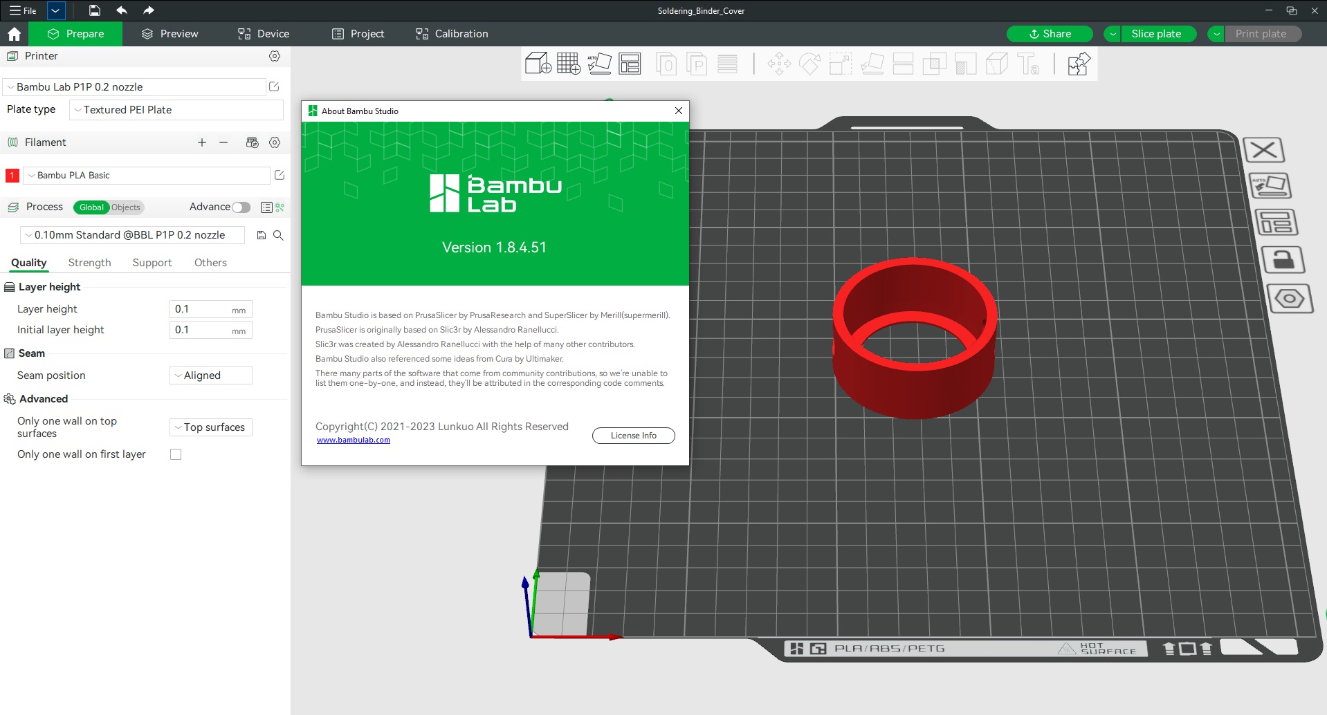 Cài đặt in của mẫu gốc: Máy in: Bambu Lab P1P Chất liệu: PLA Chiều cao lớp 0.1 [mm]