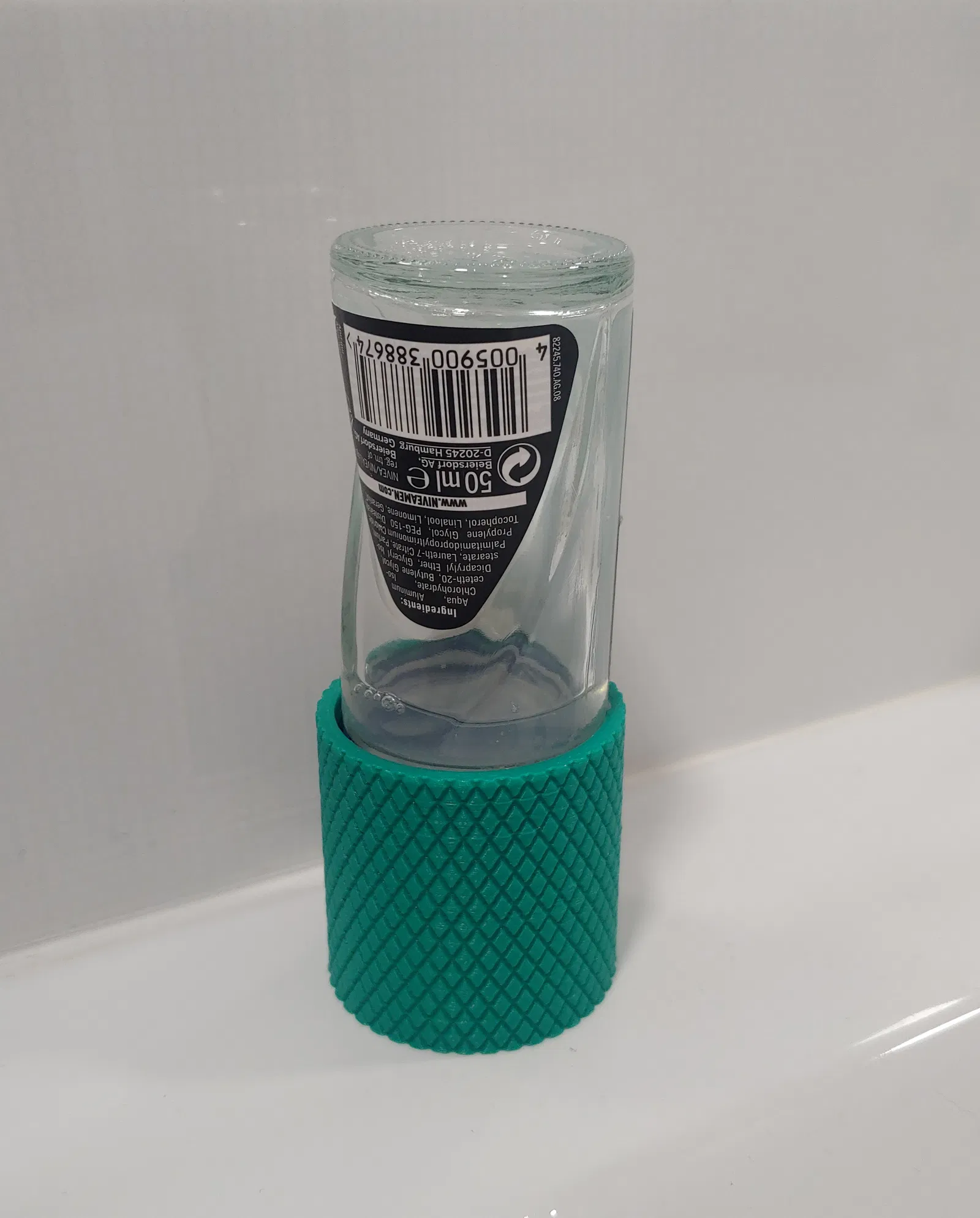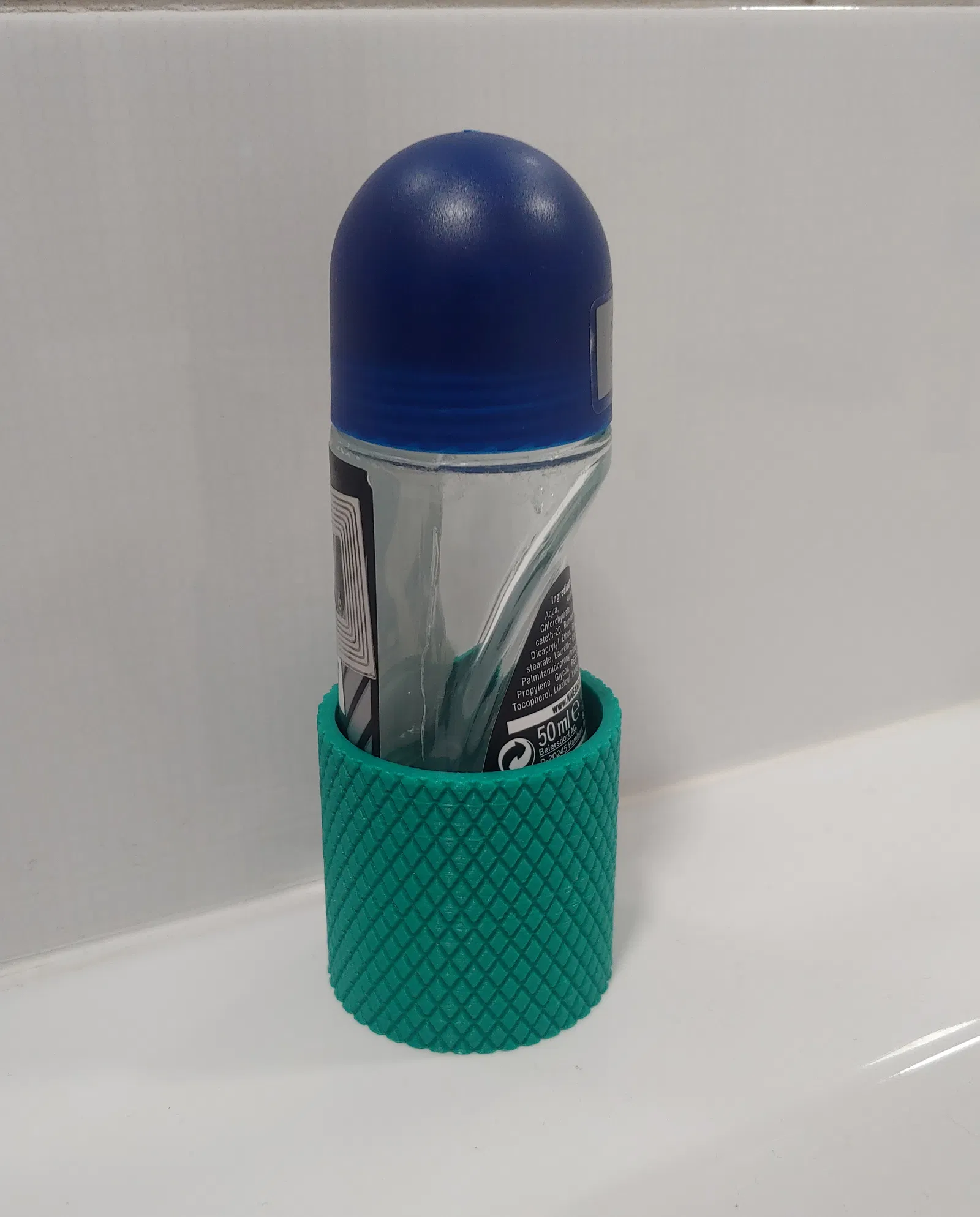 Thêm một cái đế giữ lăn khử mùi Nivea nữa, cái này cho phép bạn đặt chai lăn khử mùi ở hai vị trí, xuôi hoặc ngược. Có thêm vân knurled cho đẹp nữa.