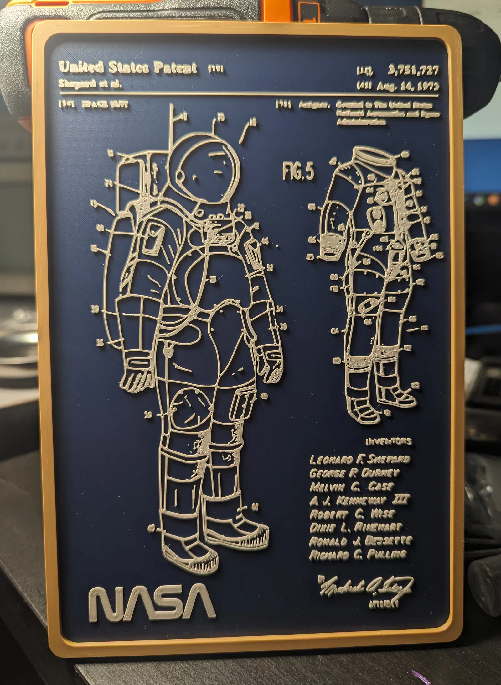 Trưng bày đĩa treo tường 2D cho bản quyền bộ đồ phi hành gia của NASA năm 1973. Mô hình này lấy cảm hứng từ các thiết kế của Ken Mills và có kích thước 192,71mm x 128,19 mm. Hướng dẫn in chi tiết với các khuyến nghị về đầu phun và vật liệu PLA.