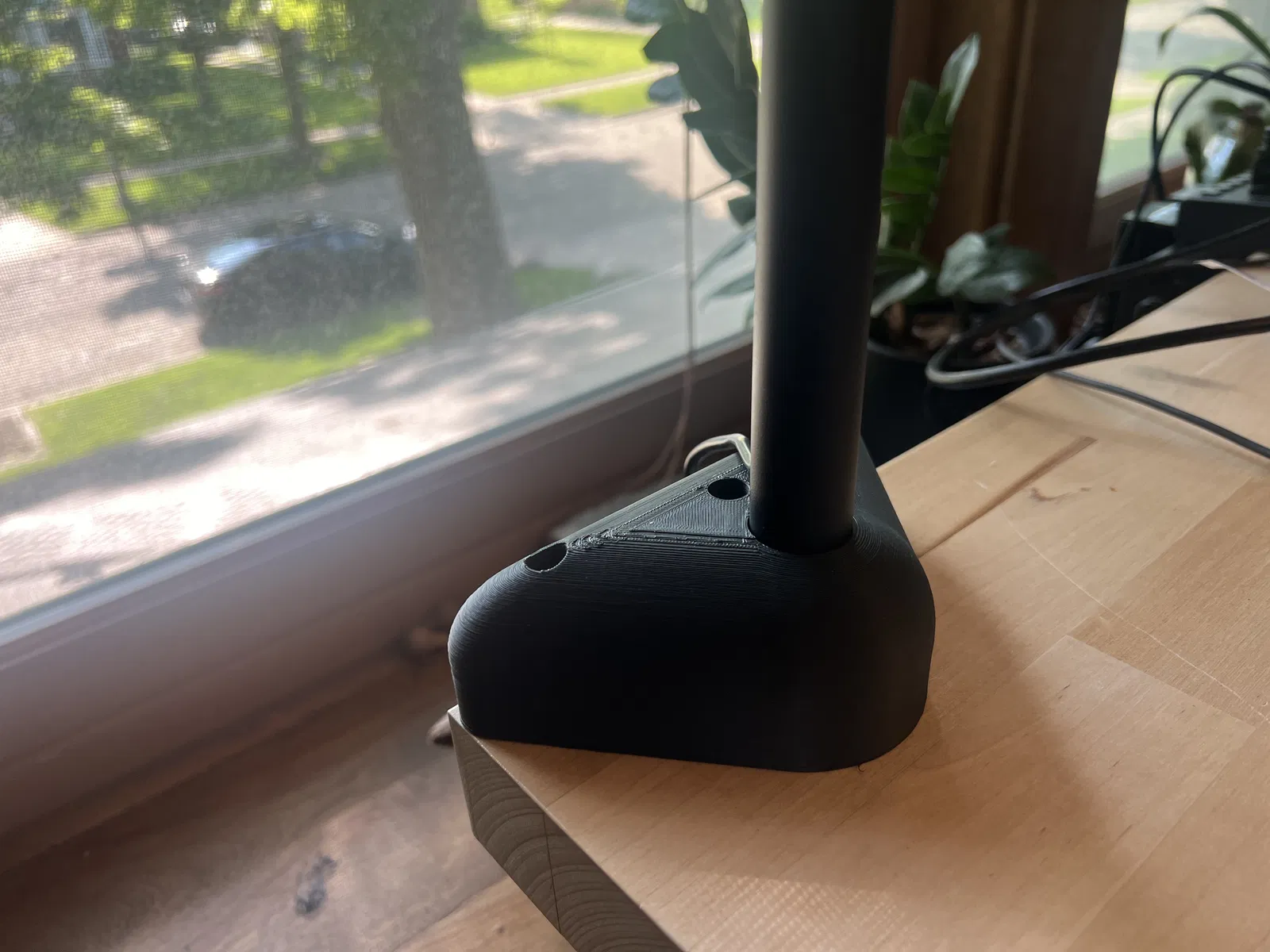 Thay thế cho chân đế có trọng lượng đi kèm. Giá treo này giúp bạn tiết kiệm không gian bàn làm việc bằng cách loại bỏ các chân đế cồng kềnh, mang lại sự gọn gàng và chuyên nghiệp cho góc setup streamer của bạn.