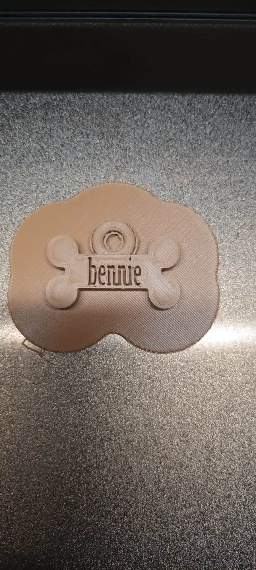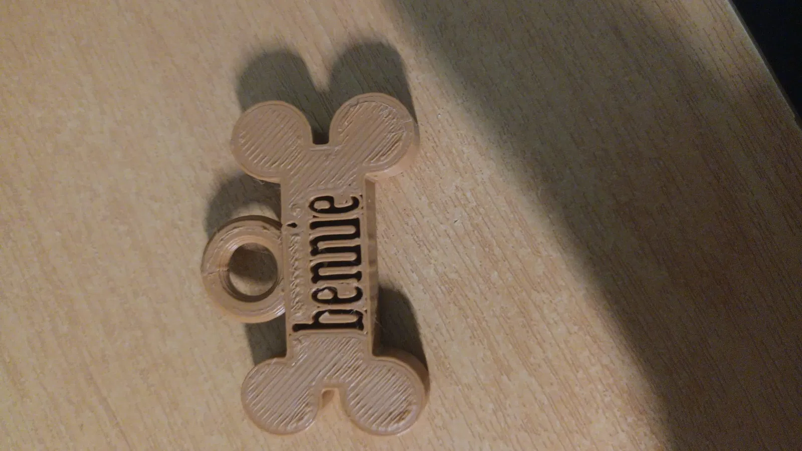 Một tấm thẻ tên độc đáo dành cho chú chó Bennie của bạn, với thiết kế hình khúc xương xinh xắn để ghi tên cún cưng. Thích hợp để trang trí hoặc làm quà tặng ý nghĩa cho những người yêu chó.