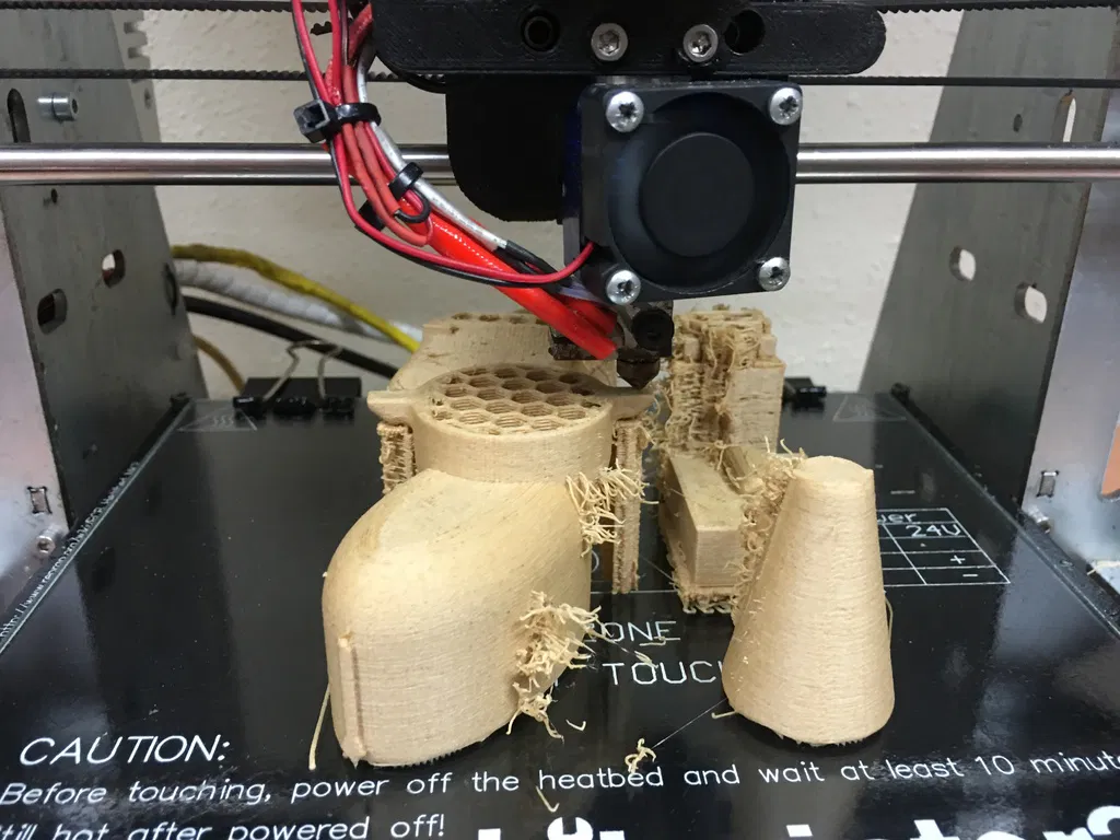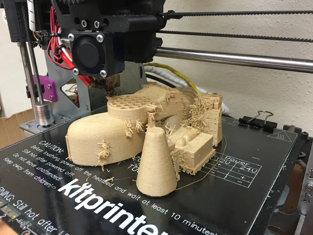 In bằng SỢI GỖ (WOOD FILAMENT) gồm 70% PLA và 30% sợi gỗ.