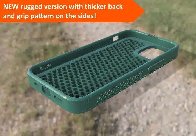 Đã tạo một vỏ iPhone 13 Mini với lỗ cho dây đeo và một số thiết kế hình lục giác ở mặt sau.