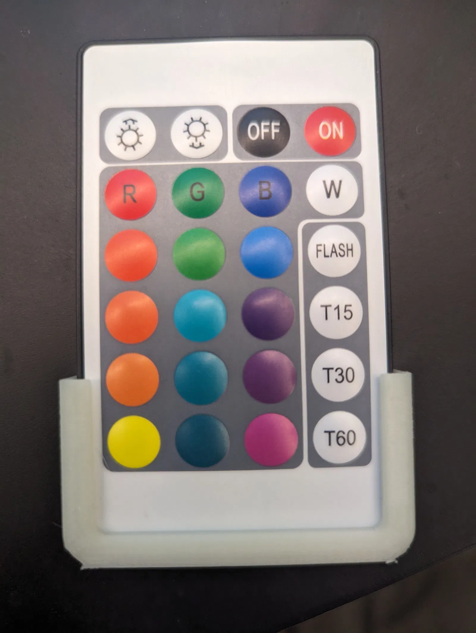Giá đỡ điều khiển LED có thêm rãnh để vừa với hầu hết các điều khiển LED nhỏ. Đề xuất mẫu đứng thẳng với vành và bộ phận hỗ trợ hữu cơ để có kết quả in tốt nhất.