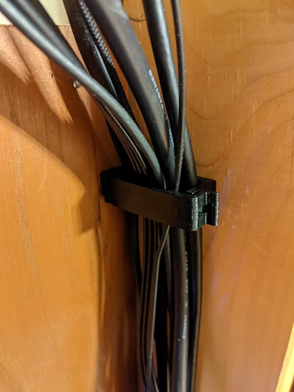 Kẹp cáp có bản lề, gắn bằng vít hoặc băng dính hai mặt. Giải pháp quản lý dây cáp hiệu quả cho bàn làm việc, trung tâm giải trí và hơn thế nữa. In bằng PETG với cài đặt PrusaSlicer mặc định.