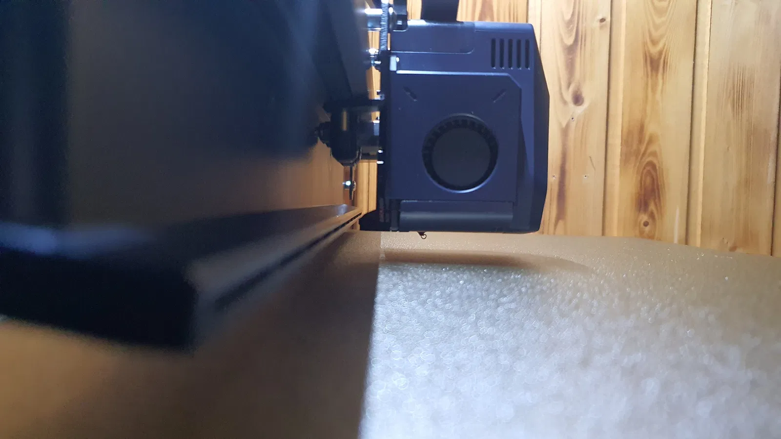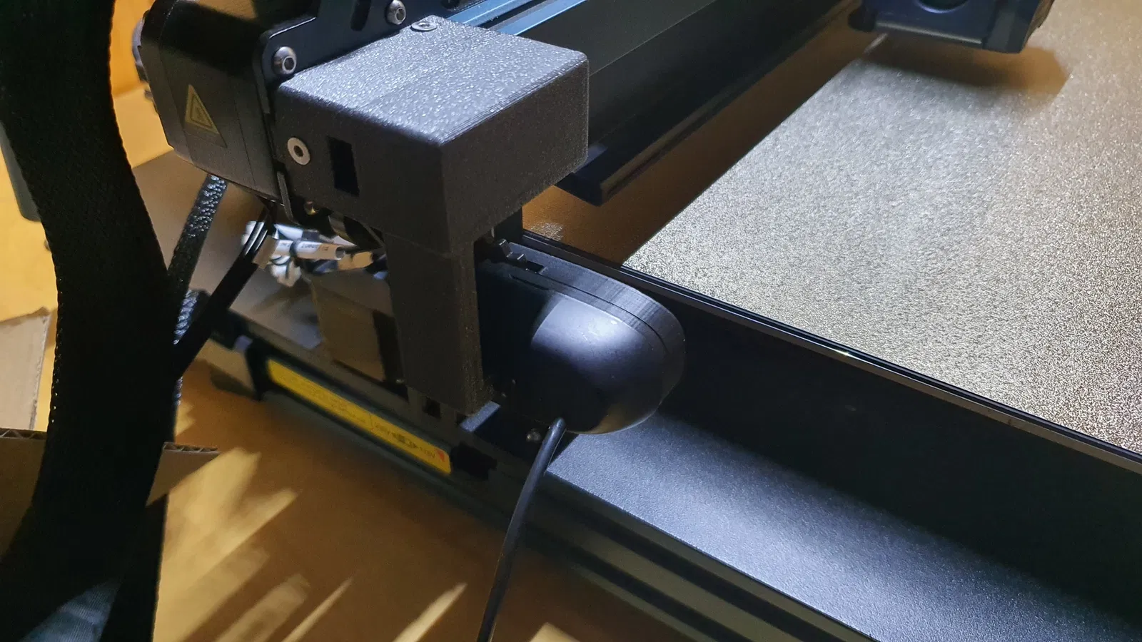Làm lại phần che trục X bên trái với điểm gắn cho Logitech C270. Phải nâng chiều cao của phần che lên để có đủ khoảng trống cho camera. Ốc vặn từ bên dưới hơi khó gắn vào, nhưng mà xài được.