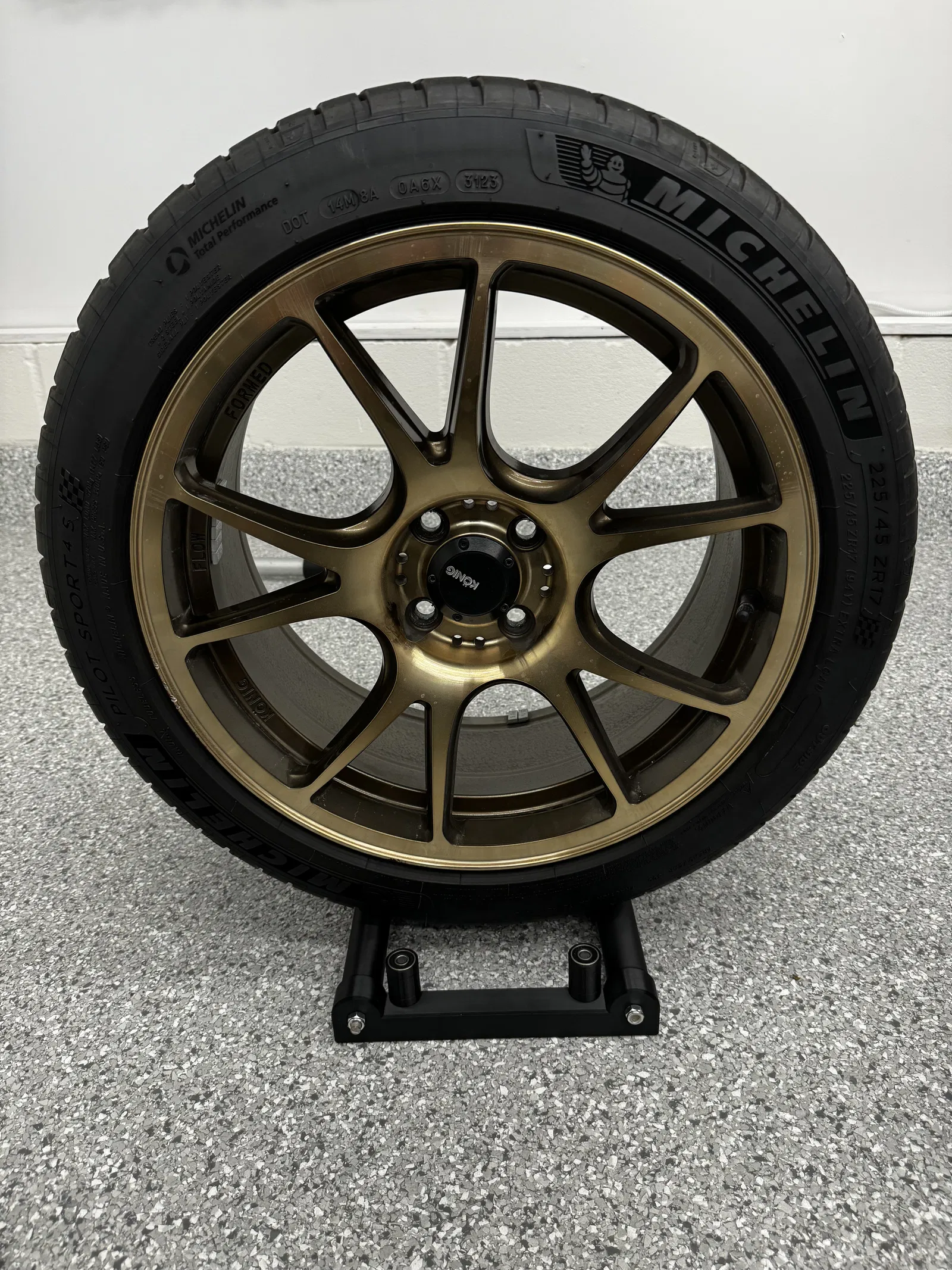 Giá đỡ chi tiết bánh xe DIY này giúp bạn dễ dàng vệ sinh mâm và lốp xe. Bạn có thể tùy chỉnh kích thước con lăn để phù hợp với nhu cầu. Sản phẩm yêu cầu ren 5/8" và vòng bi 16 608 để lắp ráp, cho phép xoay lốp xe 225/45/17 trên mâm 17x8 một cách trơn tru.
