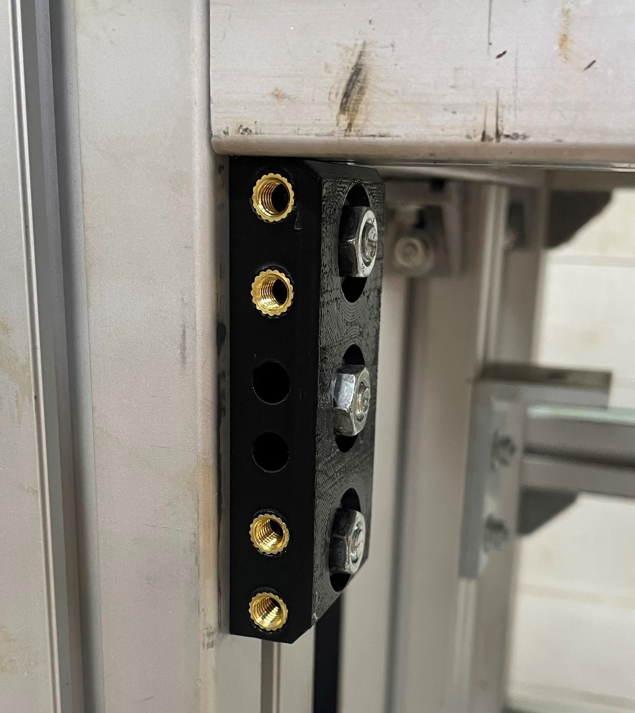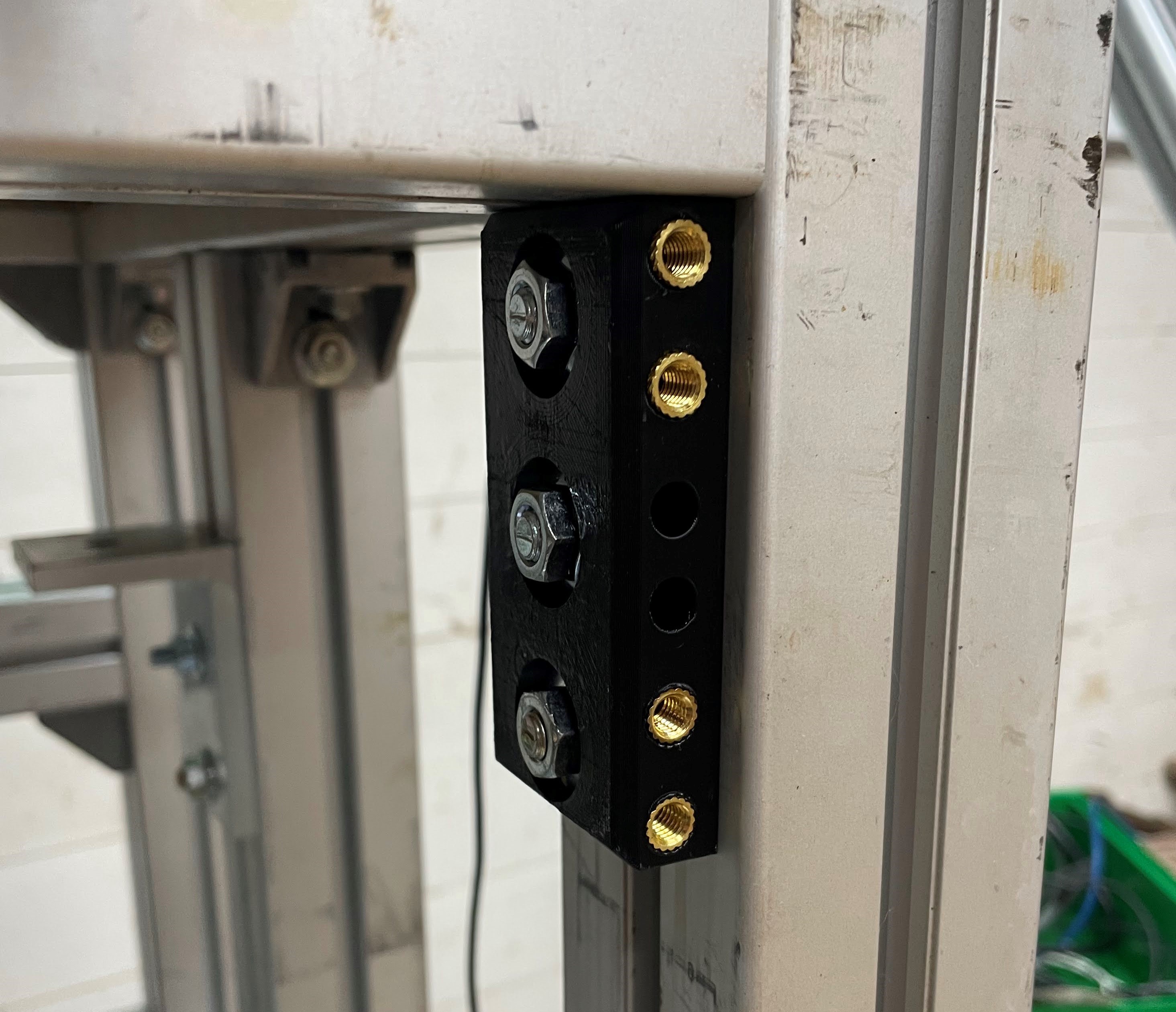 Gắn lên thanh nhôm 45 hoặc 60mm (có rãnh 10mm) (Bosch Rexroth hoặc tương tự). Sử dụng ốc lục giác chìm 6mm (Heat set inserts) để gắn thiết bị.