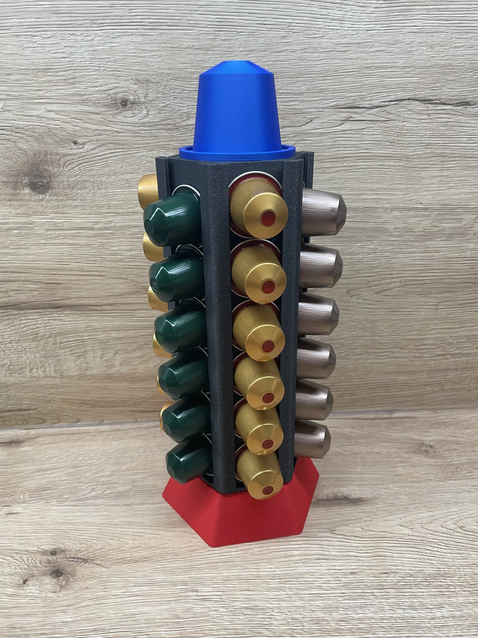 Cái tháp này dùng để cất mấy viên cà phê Nespresso á. Dễ lắm, chỉ cần in ra rồi ráp lại thôi. Có hình minh họa từng bước cho mọi người làm theo nè. Ai thích uống Nespresso thì sắm một cái nha!