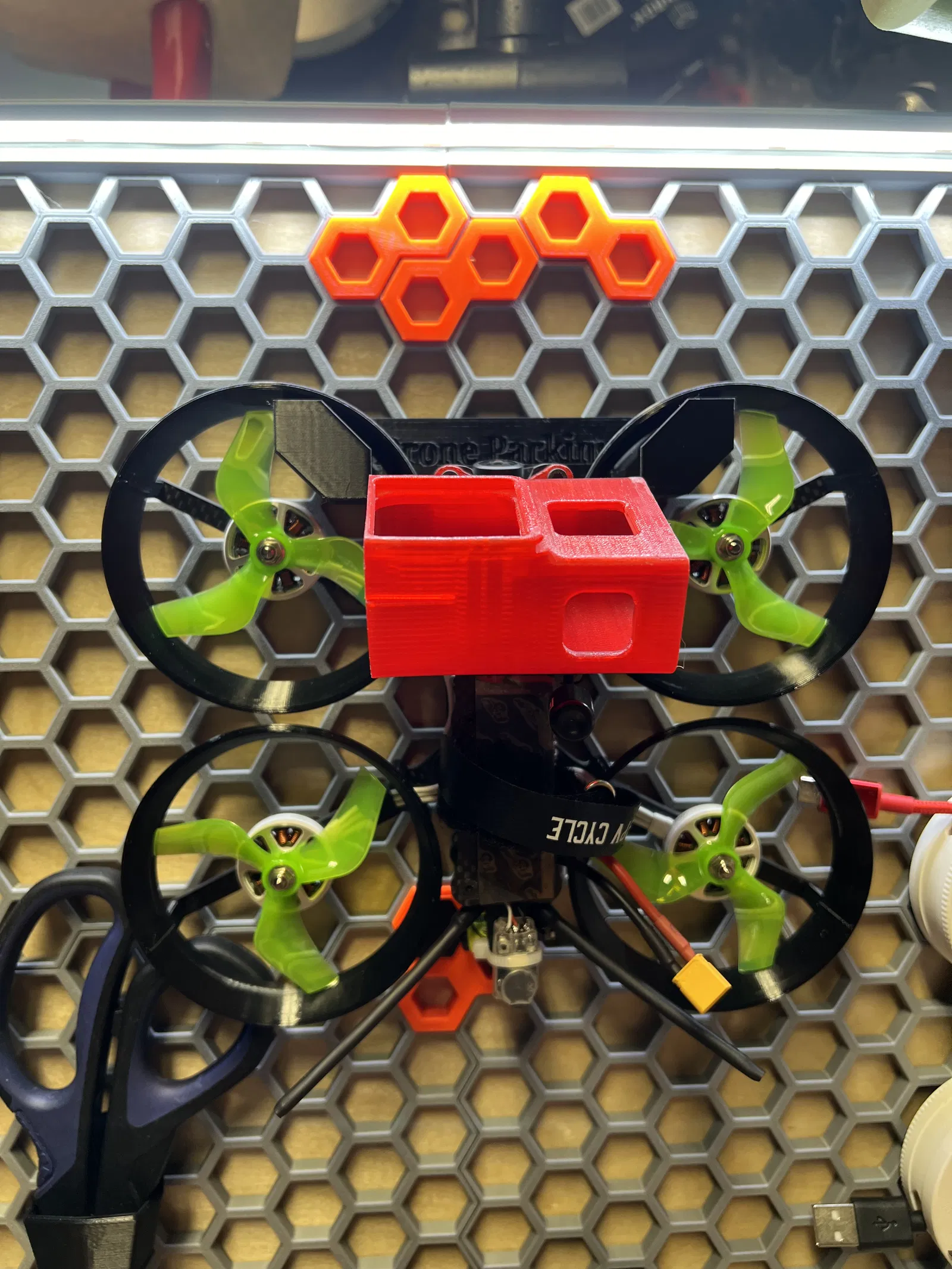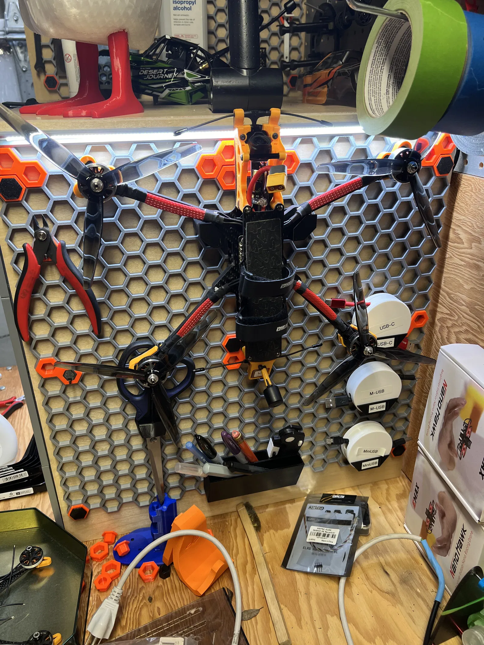 Chuyển đổi móc treo drone board ghim của mình để sử dụng với hệ thống tường tổ ong. Có thể treo drone FPV, cine-whoops, hex-copters lên tường tổ ong dễ dàng.