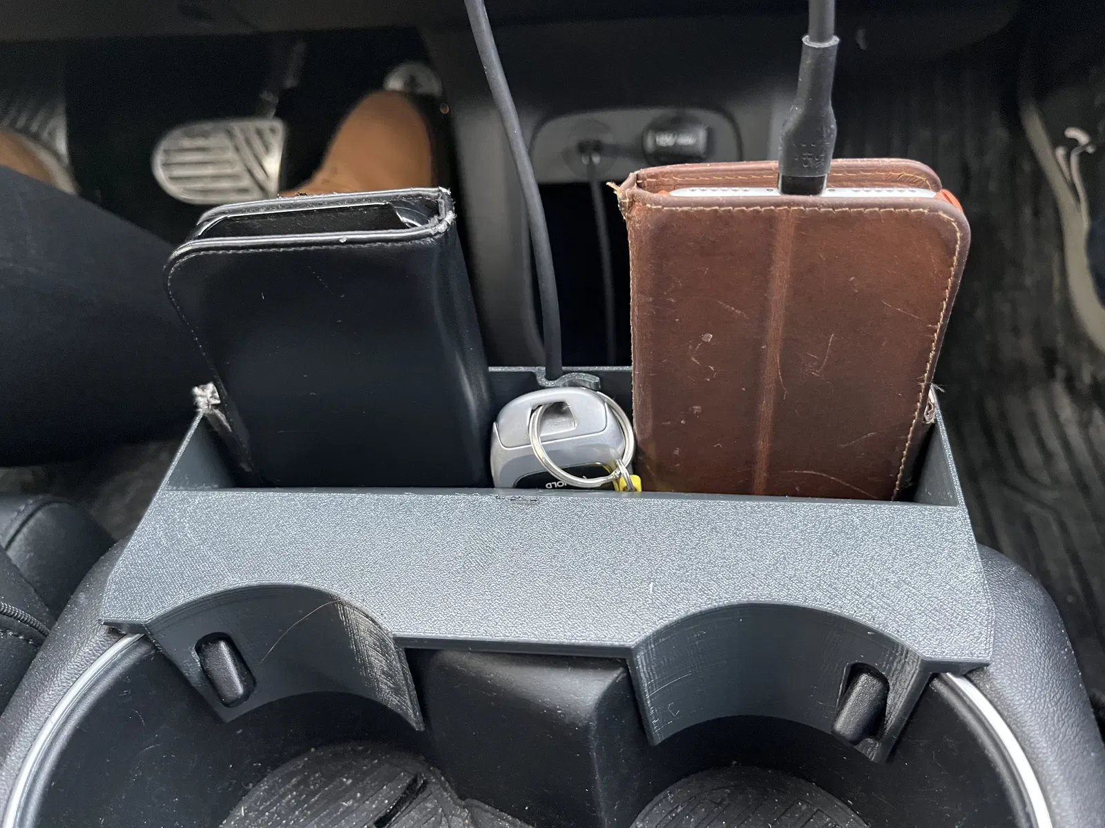 Chán cảnh điện thoại chiếm chỗ để ly, tui chế cái hộp đựng điện thoại gắn vào chỗ để ly xe Ioniq 5, kiêm luôn vụ dây cáp carplay gọn gàng. In ngược, tùy chỉnh support, chọn nhựa in phù hợp thời tiết (PLA cho xứ lạnh, PETG cho xứ nóng).