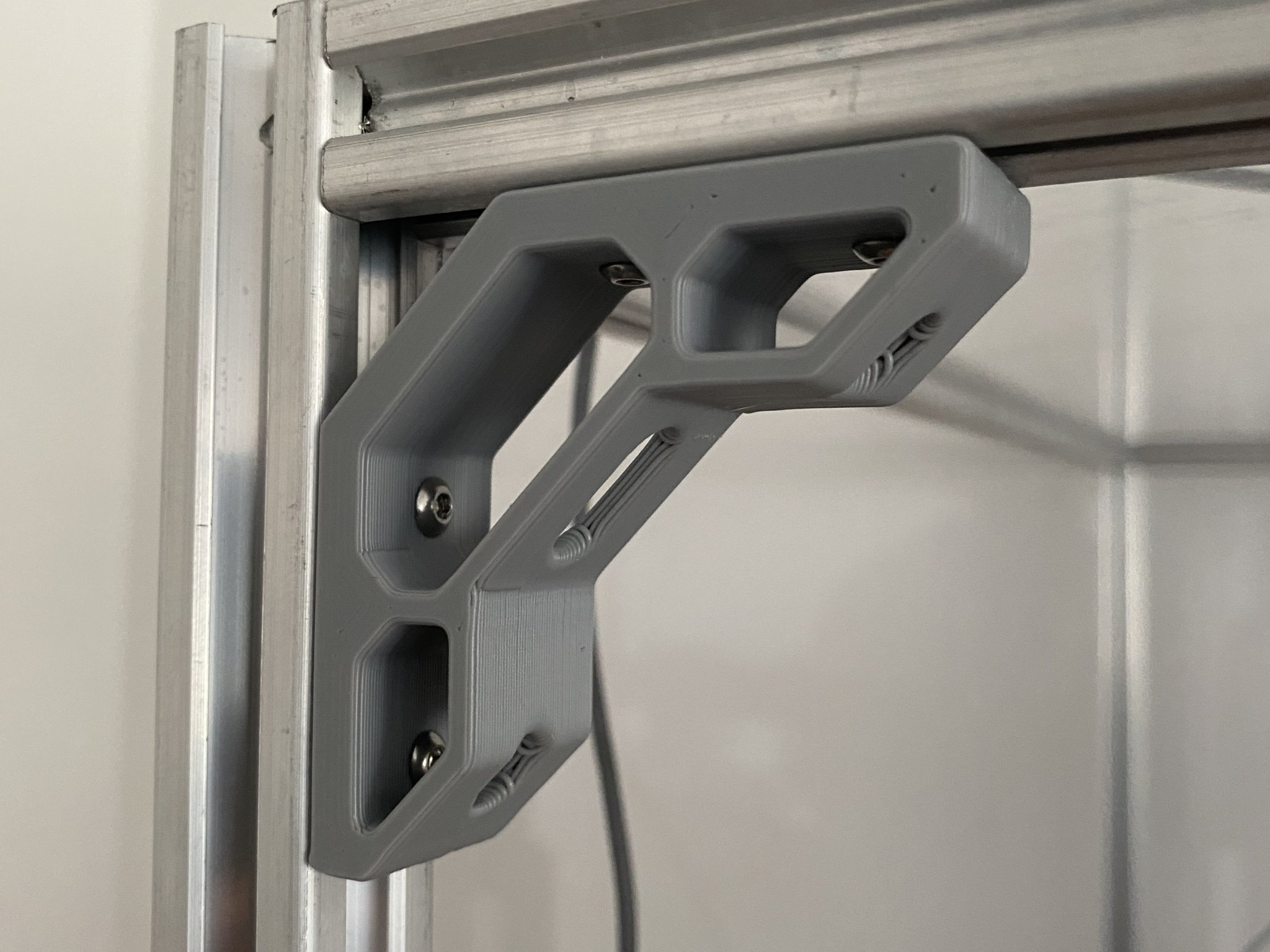 Khung góc 60x60x20 sẽ chấp nhận ốc vít M3. In phẳng mà không cần hỗ trợ.