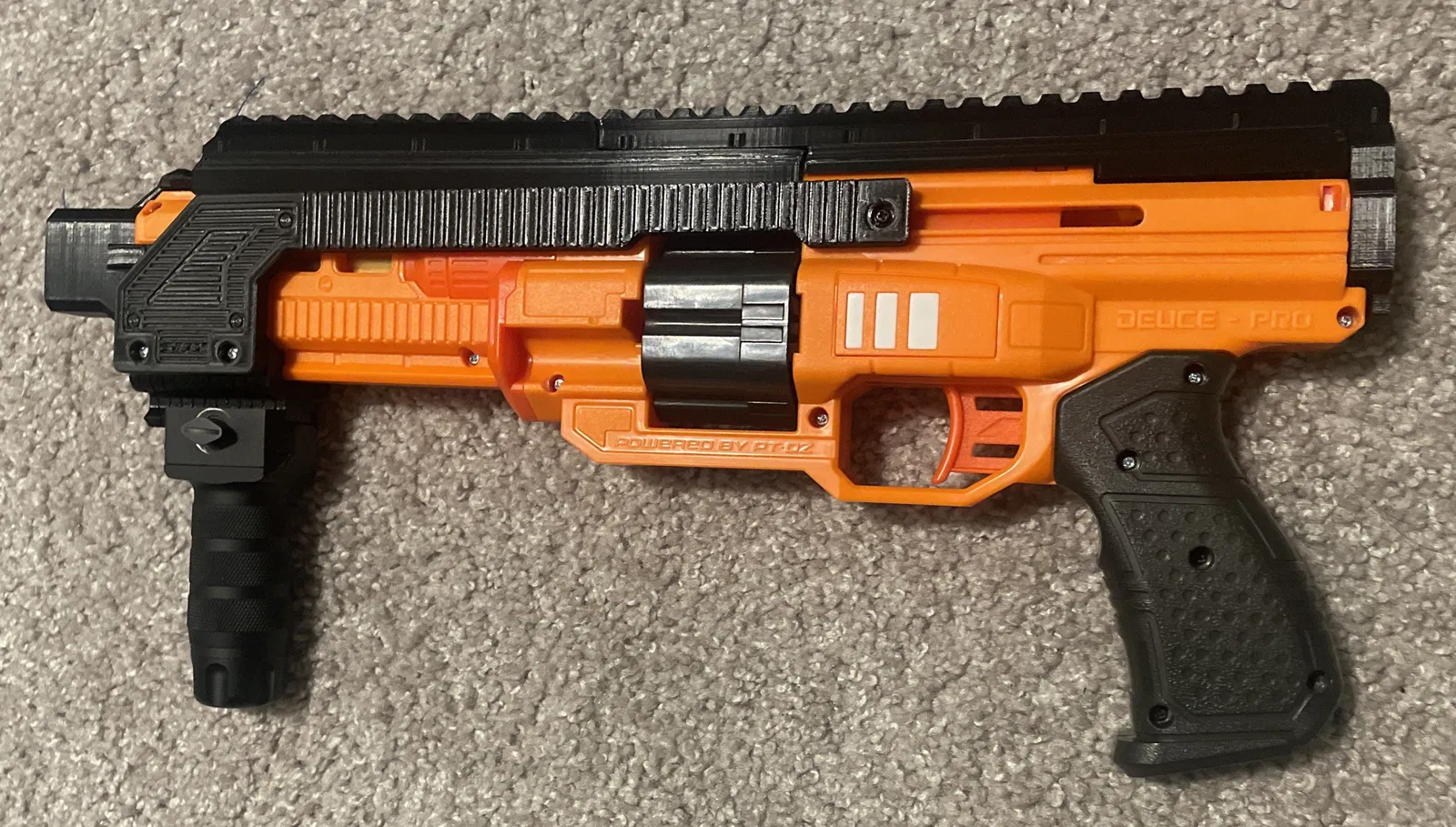 - Lưu ý: Phiên bản hiện tại không có báng súng hoặc điểm gắn báng súng. Tôi sẽ sớm làm một điểm gắn báng súng bền hơn các mẫu thử nghiệm trước đây. Thực sự không có nhiều vật liệu ở phía sau Deuce Pro để gắn đồ vào. Có lẽ tôi có thể quấn quanh các cạnh thay thế, hmm.
