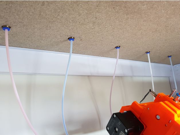 Tôi cũng đã làm một giá đỡ / bộ cấp ống PTFE xuyên qua kệ, cái này dùng đầu nối ống PTFE M10. Xem Giá đỡ M10 trong phần tệp. Bạn sẽ cần mua một đầu nối M10 cho mỗi cái.