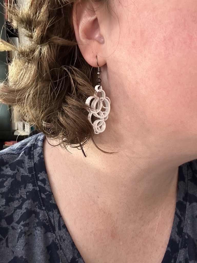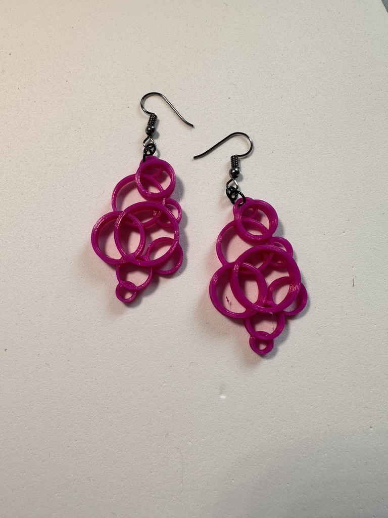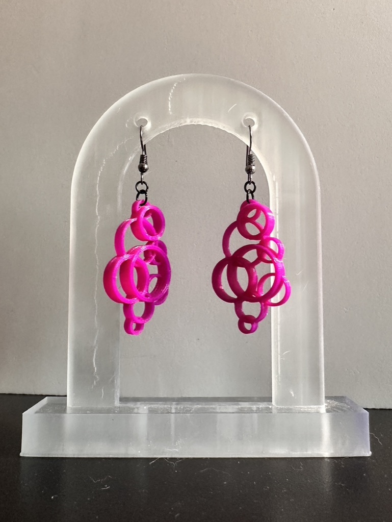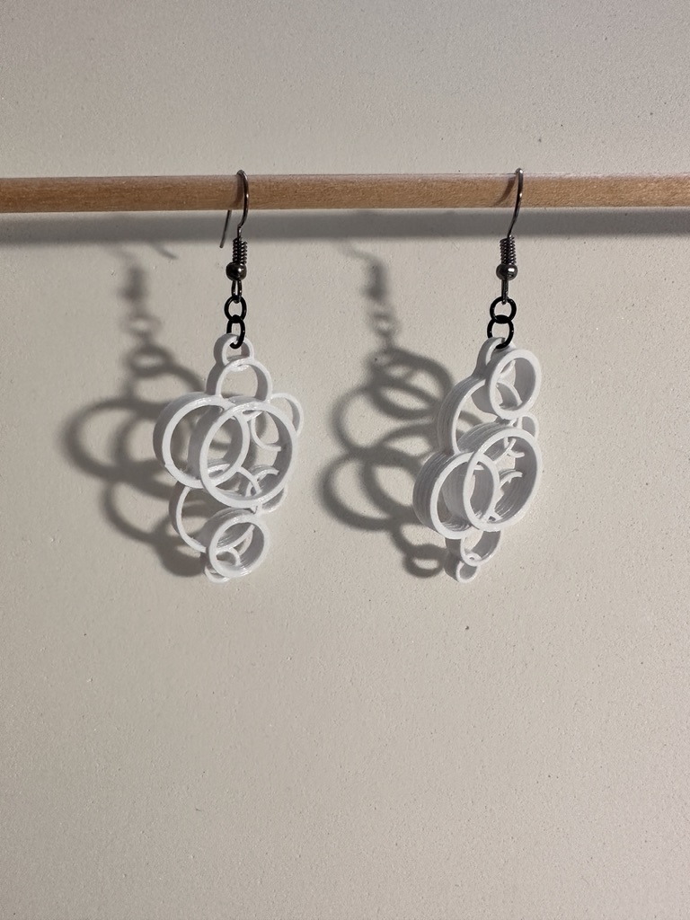 Một bộ bông tai được làm từ nhiều vòng tròn lồng vào nhau với đường kính và chiều cao khác nhau.