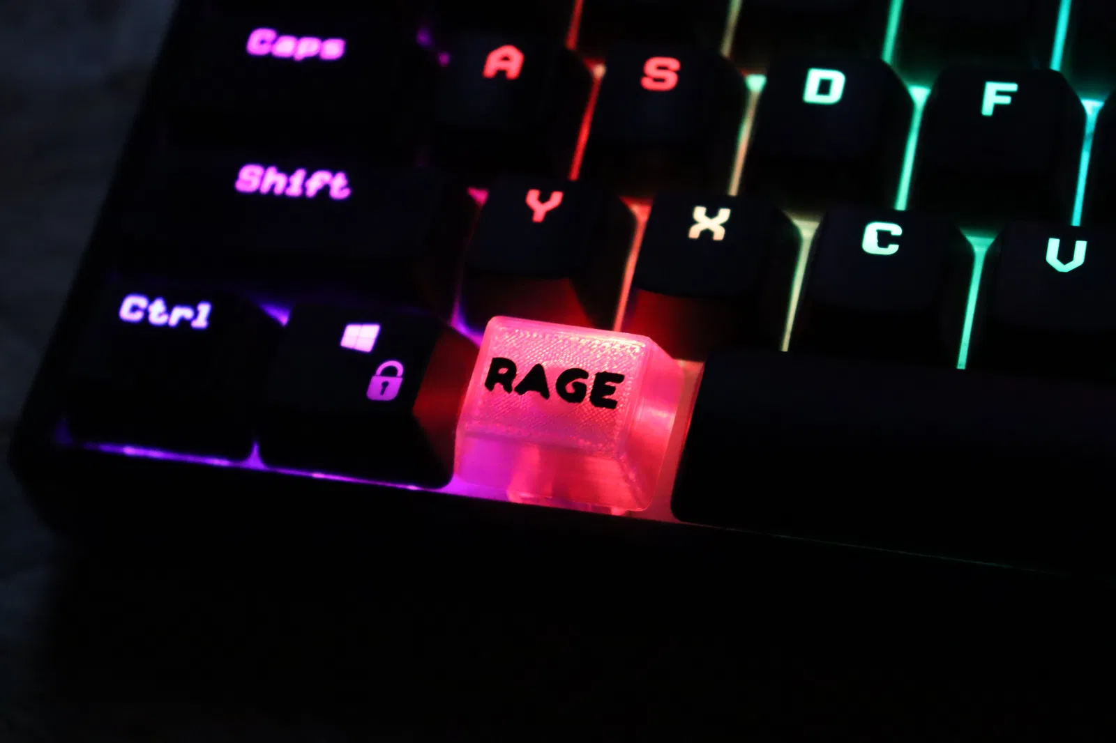 Bạn chán ngấy mấy nút Alt+F4 nhàm chán trên bàn phím rồi? Đã có keycap "Rage Quit" Cherry MX, làm từ nhựa trong suốt để ánh sáng RGB tuôn trào, thay thế nút cũ và thêm phần cá tính cho góc máy của bạn.