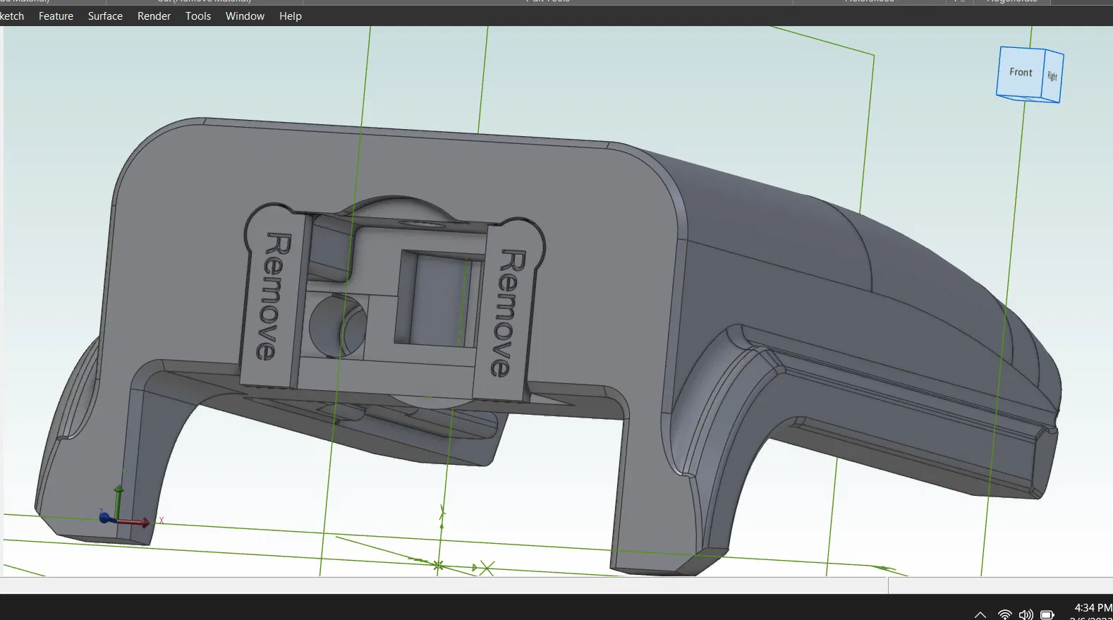 Nó có các support tích hợp sẵn, sau khi in xong thì có thể bẻ ra được. Rõ ràng là in với mặt support úp xuống, sát với bàn in.