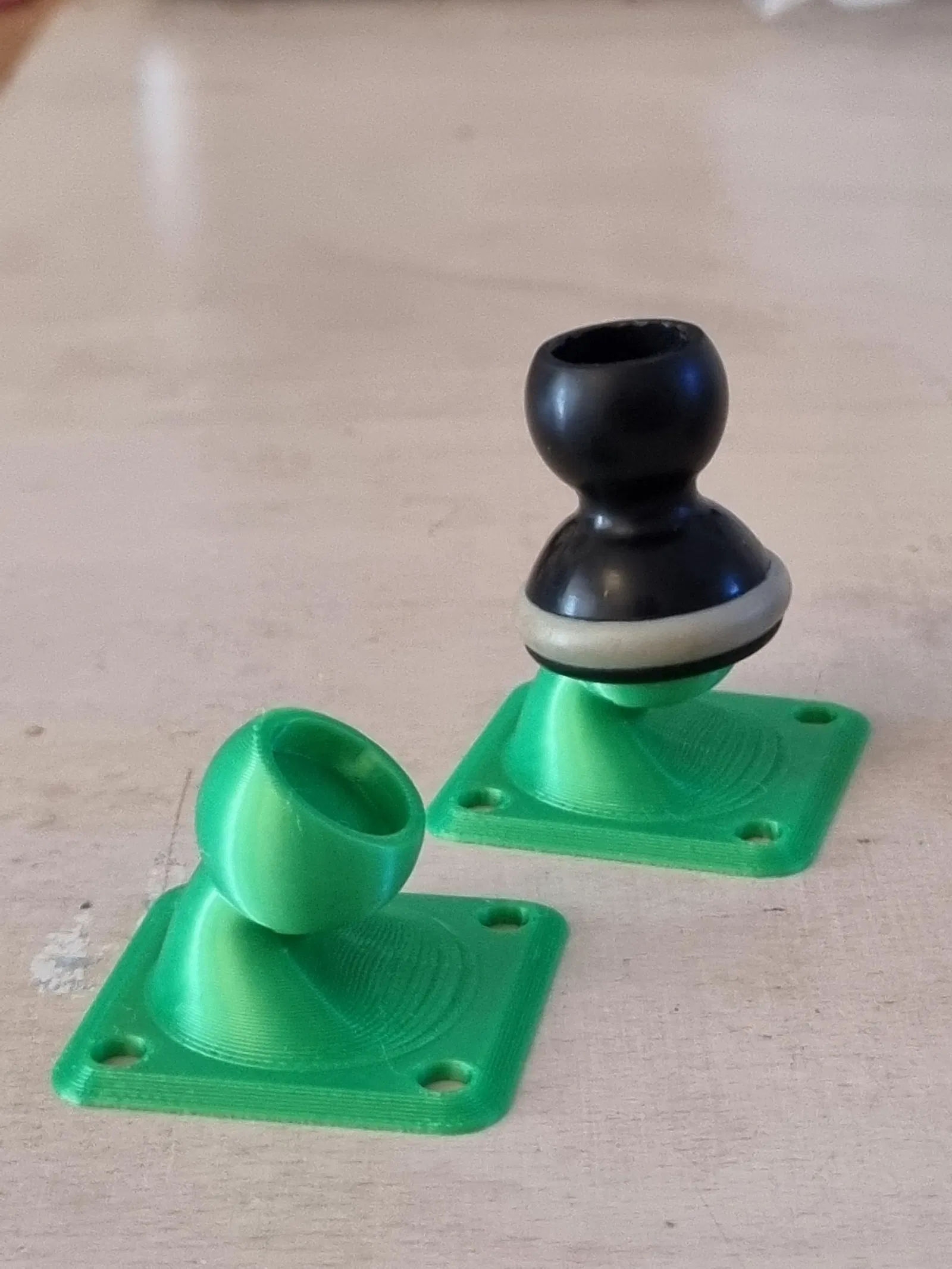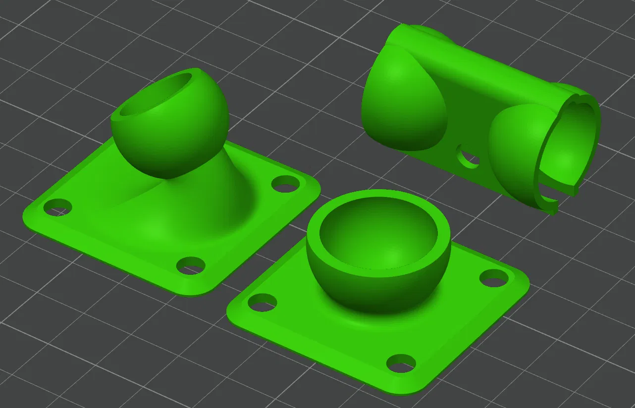Khớp cầu này sẽ tương thích với chuỗi Gorilla Pod. Thiết kế với "doublecup" để nối hai đầu bi, có thể siết thêm bằng ốc. Khuyến khích in phần bi và double cup bằng PLA.