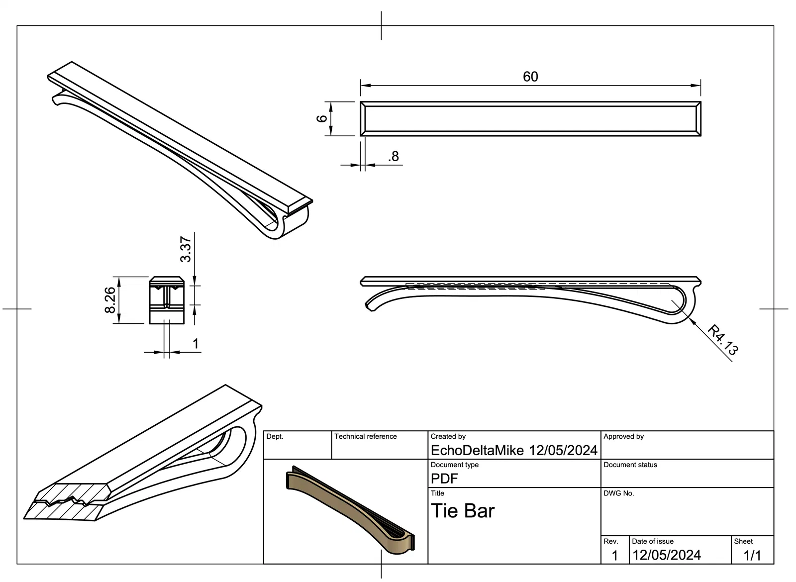 Thanh cà vạt 1 mảnh, không cần hỗ trợ. Một thanh cà vạt đơn giản nhưng thanh lịch, có cấu trúc bên trong để bám vào vải. In bằng màu bạn thích, không cần vật liệu hỗ trợ. Rất tiện lợi khi đi qua máy dò kim loại!