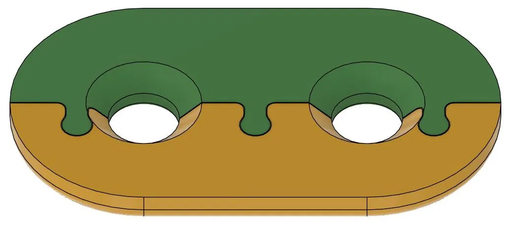 Khoảng cách giữa các lỗ là 50 mm và có các đường kính (ống) sau: 14, 15, 16, 17, 18, 19, 20 mm. Kích thước của tấm là 110 x 60 mm.