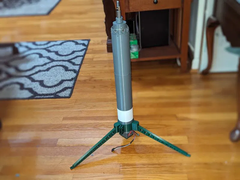 Kiểm tra chuyển động khi gắn trên phiên bản tripod đời đầu (sau đó được thay thế bằng phiên bản kẹp chắc chắn hơn)