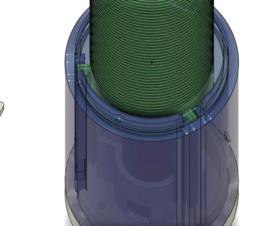Các bộ phận nắp che bên trong có các rãnh trên thành bên trong, chúng dẫn hướng cho các cánh tản nhiệt trên khuôn cuộn dây. Chúng giữ cho cuộn dây không bị xoay khi motor quay vít và giúp ổn định nó khi cuộn dây được nâng lên hết cỡ.