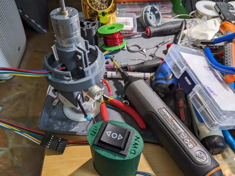 Mô hình anten screwdriver tự chế cho mục đích di động, với cuộn cảm tải có khả năng đạt 100uH. Sử dụng motor và vít để điều chỉnh độ tự cảm, điều khiển bằng công tắc DPDT. Phần lớn cấu trúc được in 3D từ nhựa ASA, kèm theo chân máy tripod dạng kẹp tiện lợi.