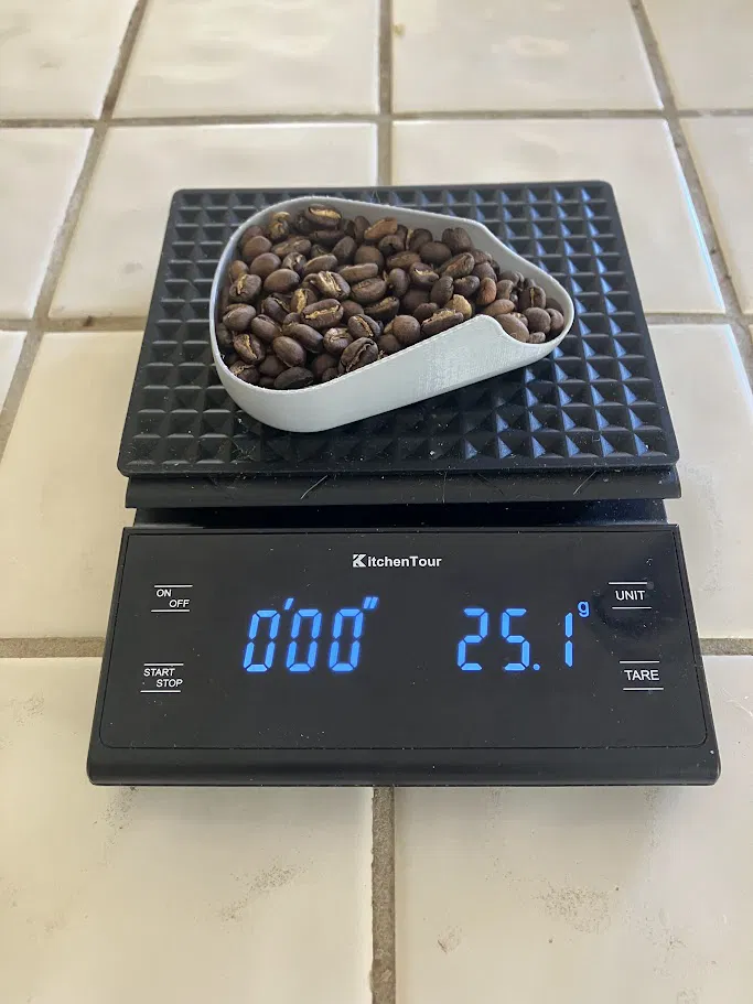 Khay định lượng hạt cà phê để cân hạt hoặc bột cà phê cho việc pha chế. Thiết kế đơn giản, hiệu quả, làm từ PETG, không cần supports. Dung tích 20g hạt, rót chính xác vào máy xay.