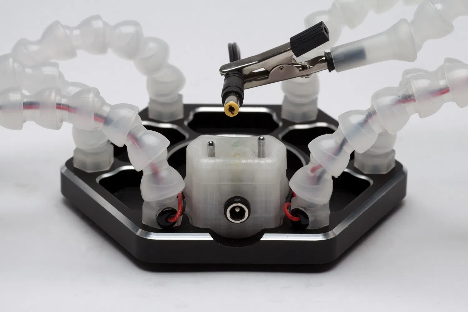 - Dây điện linh hoạt (silicone) đi qua ống và bộ chia.