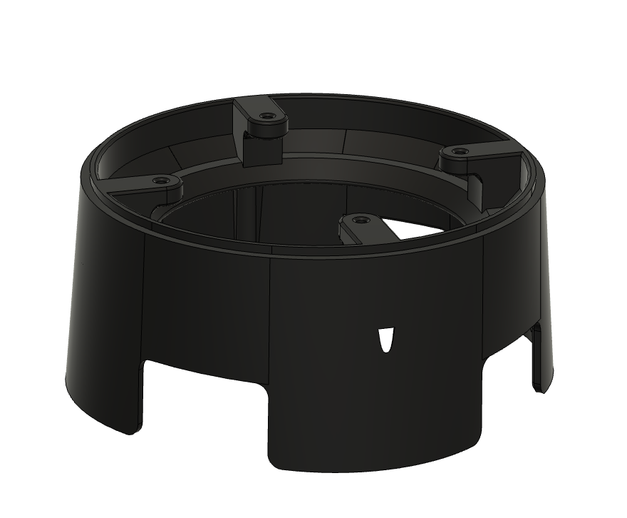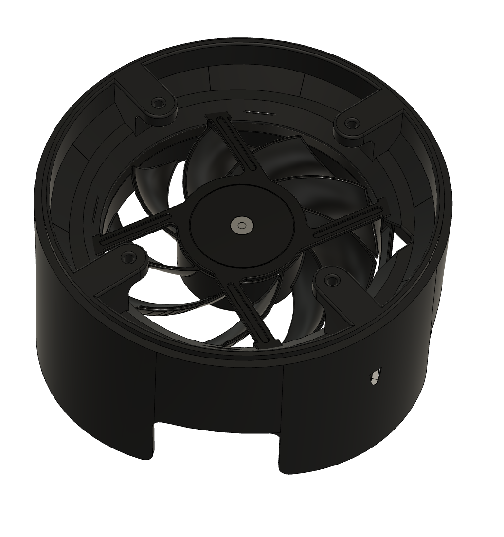 Vặn vào các lỗ ren bằng đồng sẵn có dùng để cố định đáy thùng máy ban đầu. Tôi khuyên bạn nên dùng vít M3 loại 15 hoặc 20mm để gắn đế. Quạt có thể được vặn vào từ phía trên của đế.