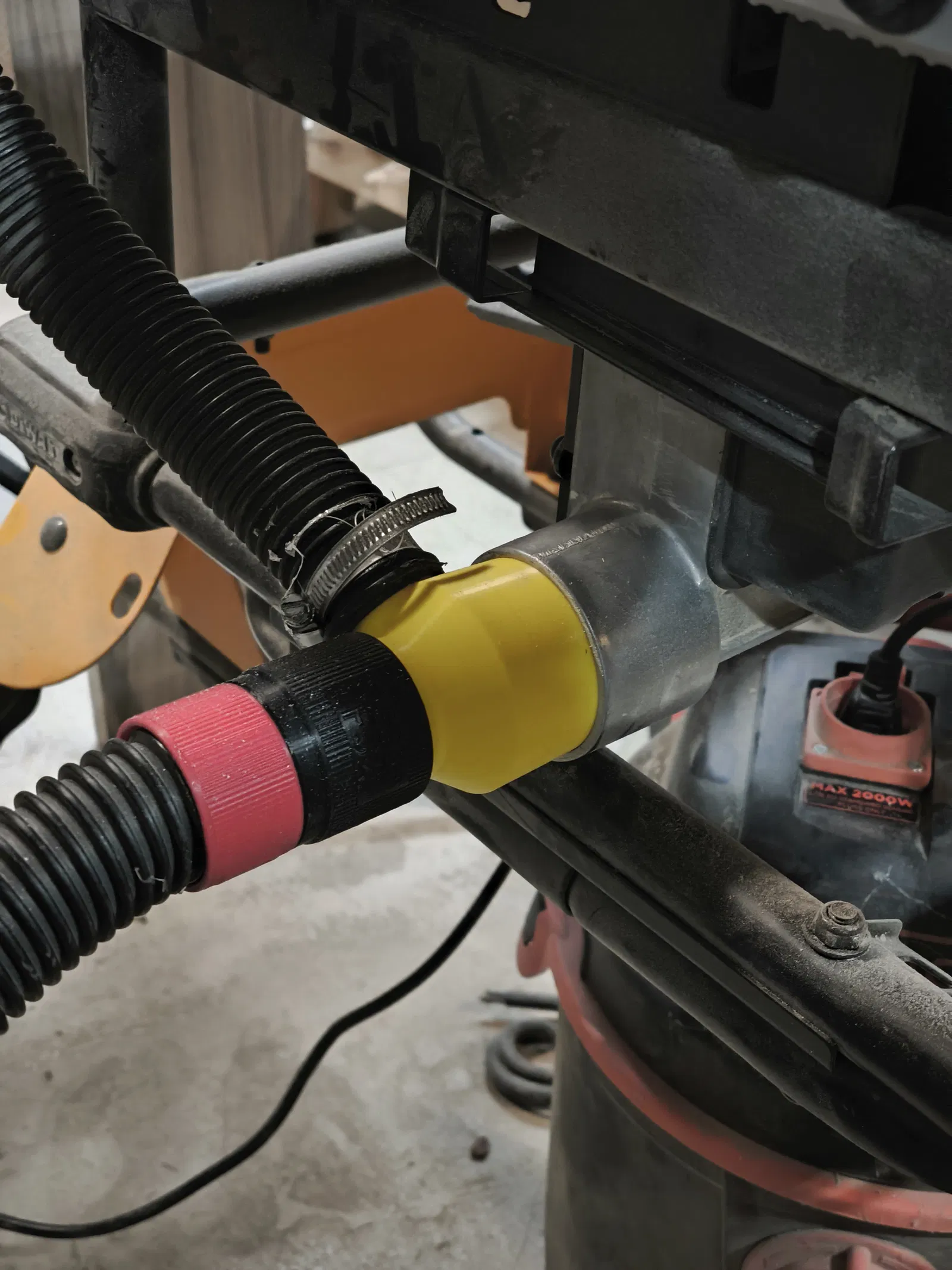 Tôi đã thiết kế cái này cho máy hút bụi của máy cưa Dewalt DWE7492 trong xưởng. Ngoài ra, vì tôi dùng hệ thống osVAC khắp xưởng, nên tôi đã thêm đầu đực cho cả hai kết nối hút bụi.
