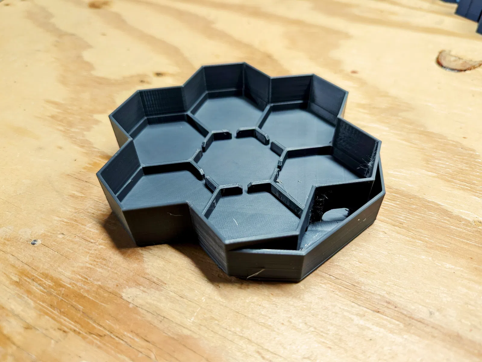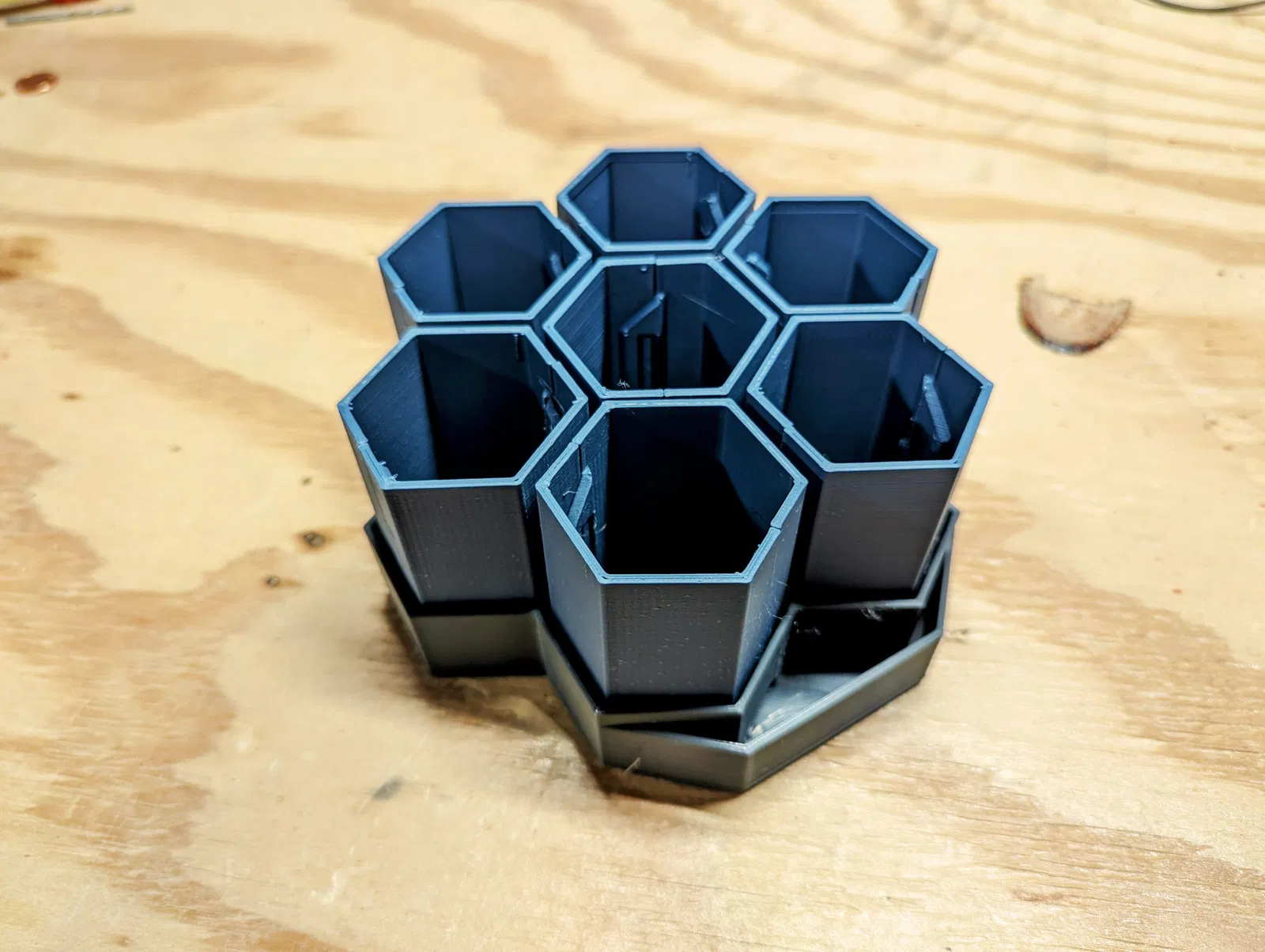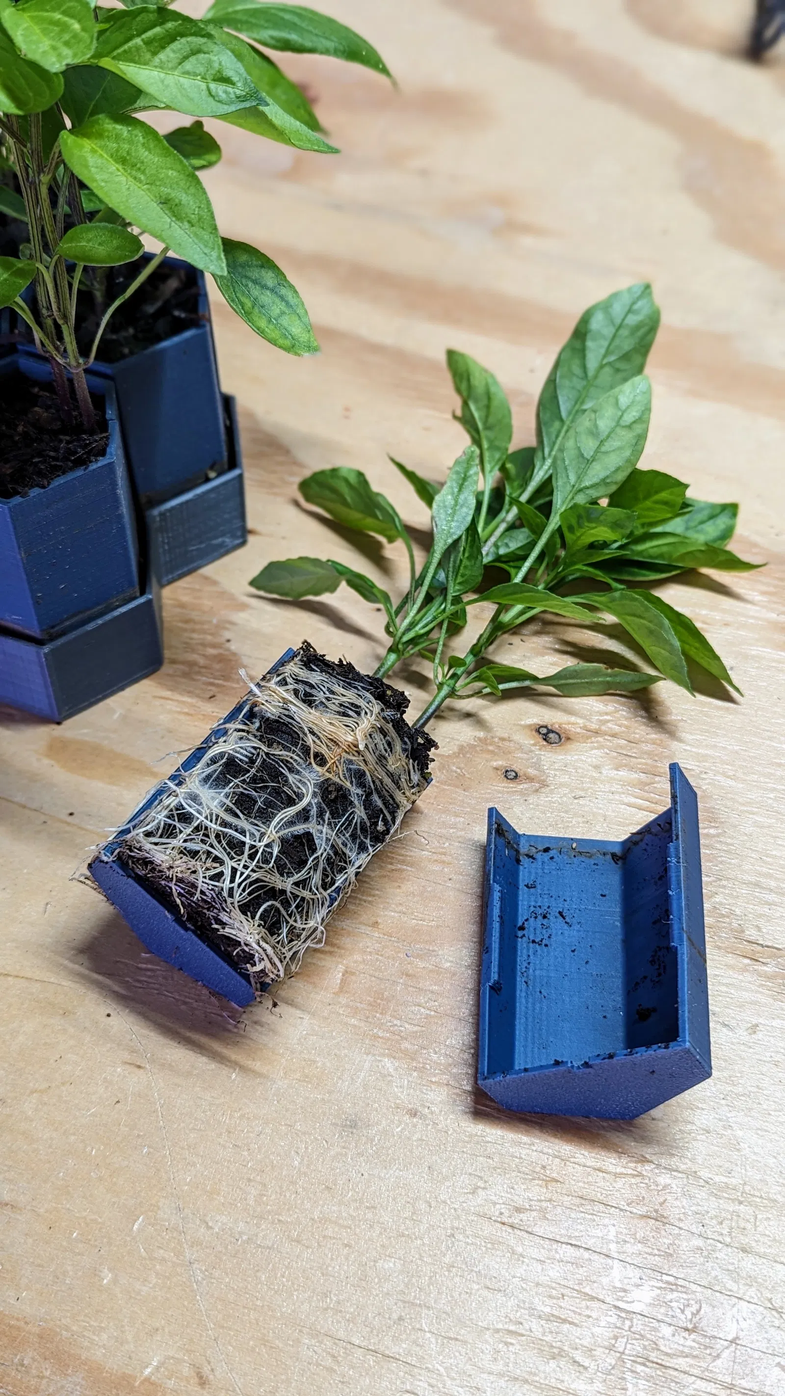 Thiết kế hình bát giác, khay ươm cây tự tưới có ly. Khi sẵn sàng để trồng, các ly sẽ tách rời để tránh làm hỏng cấu trúc rễ. Xem thiết kế gốc của tôi: