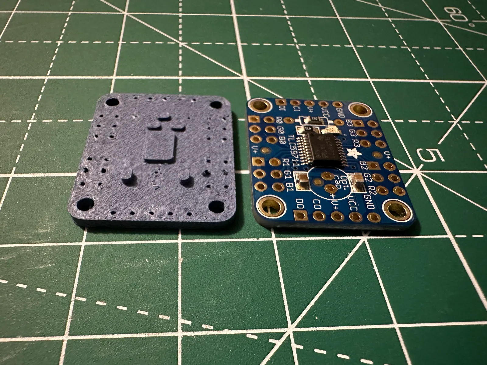 Đây là một mô hình tỉ lệ, có thể in được của Adafruit 12-Channel 16-bit PWM LED Driver - SPI Interface - TLC59711, có giao diện SPI và giá khoảng 7.50 đô la Mỹ. Trang sản phẩm cho thiết bị này có thể tìm thấy tại đây. Tôi đã in được mô hình trong hình ảnh trên với PLA màu xanh mờ và đầu phun 0.4. Kết quả của bạn có thể khác. Nó dành cho những người làm đồ chế tạo điện tử, dùng để đưa vào quy trình thiết kế của họ, vì nó loại bỏ quá trình đo đạc chi tiết này khi thiết kế các thiết bị tuyệt vời của bạn. Nếu bạn muốn xem mô hình 3D bằng màu sắc trên trình duyệt của mình và có tùy chọn AR, bạn có thể xem trực tiếp tại trình xem Shapr3D tại đây. Nếu bạn chế tạo thứ gì đó và sử dụng cái này làm tài sản, làm ơn làm tôi vui bằng cách đăng nó vào phần 'makes' nhé! Các phiên bản: 2023.08.28: Tải lên ban đầu. Tín dụng: Dựa trên tài sản Eagle do Limor "Ladyada" Fried và Jan Hoffmann từ Adafruit sản xuất.