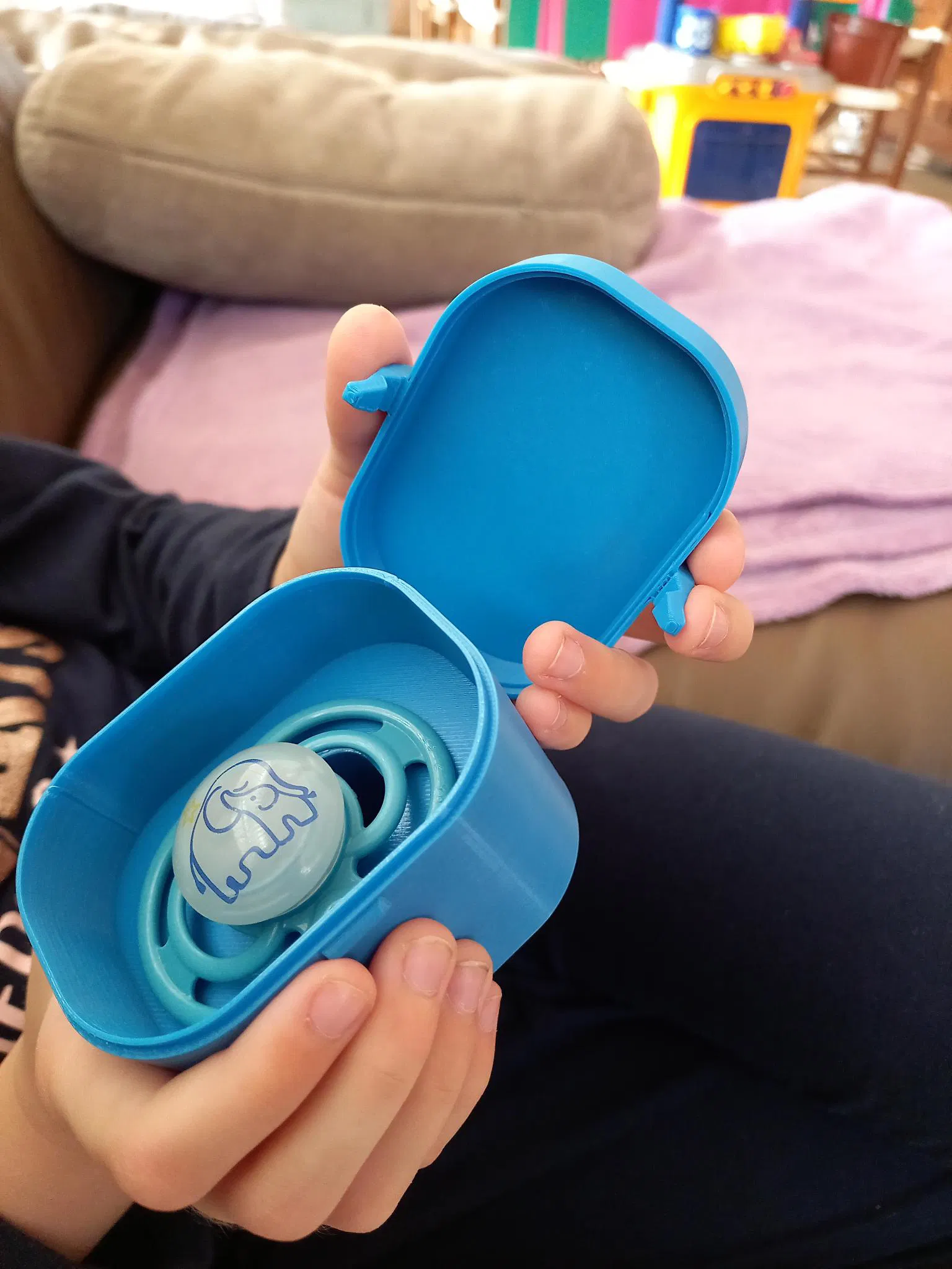 Hộp đựng ti ngậm giúp mẹ bảo quản ti ngậm cho bé gọn gàng, sạch sẽ, tránh để lung tung. Phiên bản này đã được chỉnh sửa để kẹp nắp căn giữa chuẩn xác hơn.