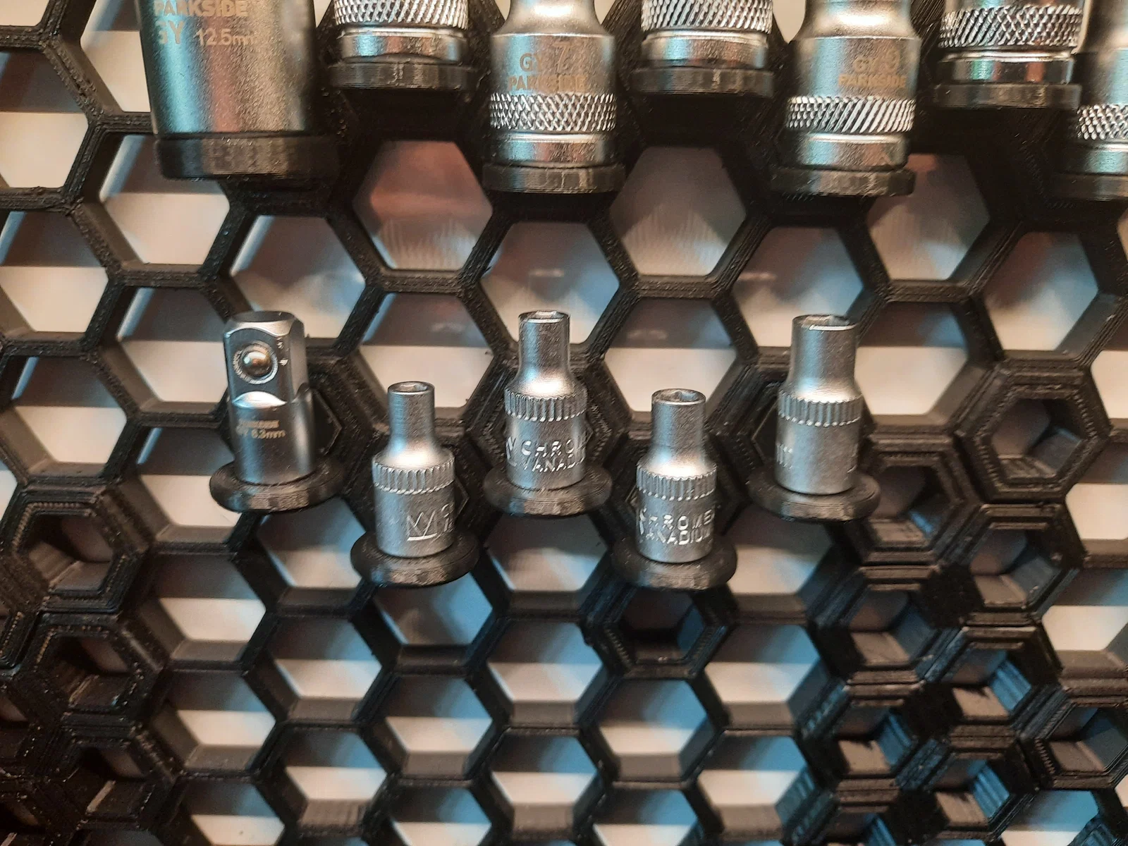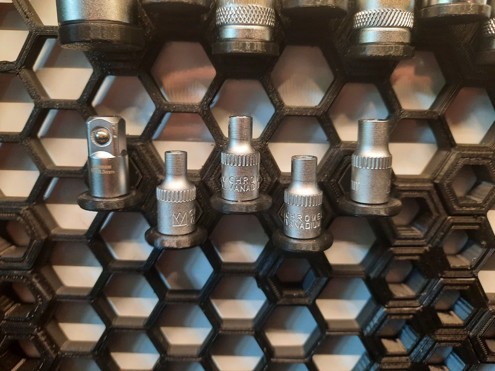 Cái đế giữ ổ cắm này dành cho hệ thống Honeycomb storage wall, chuyên dùng cho các loại ổ cắm có lỗ vuông kích thước 0,25 inch. Sản phẩm giúp bạn sắp xếp gọn gàng các dụng cụ sửa chữa.