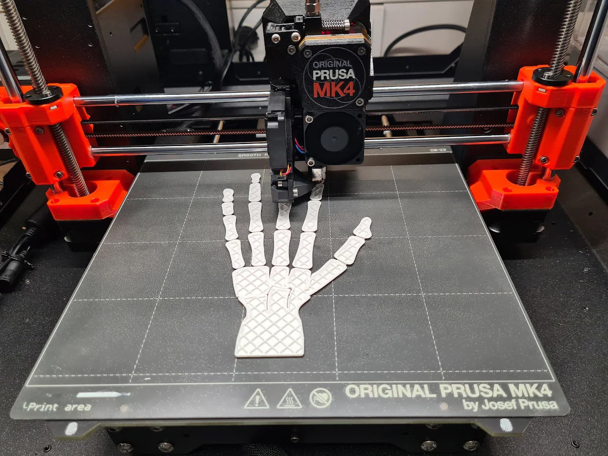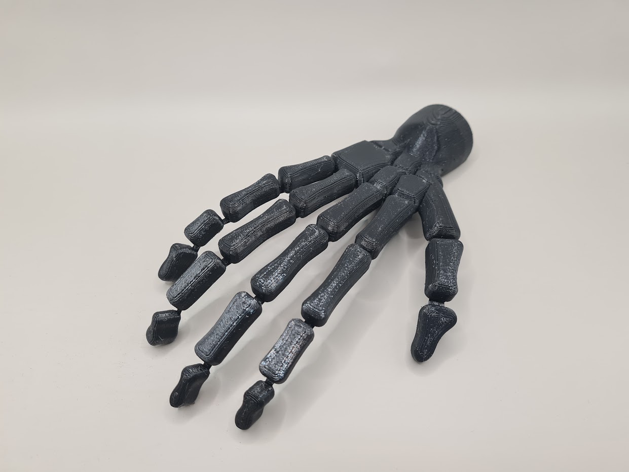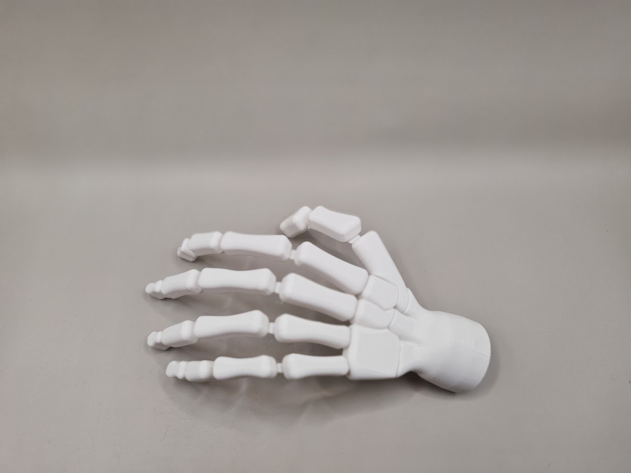 Bàn tay bộ xương cử động là một mô hình giải phẫu được thiết kế để thể hiện chuyển động tự nhiên của bàn tay thật. Mô hình này có thể được in bằng TPU để tăng độ bền hoặc PETG/PLA cho vài lần cử động.