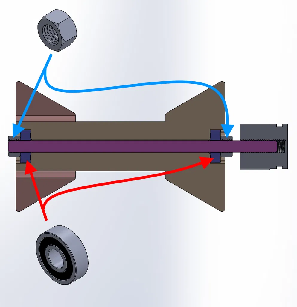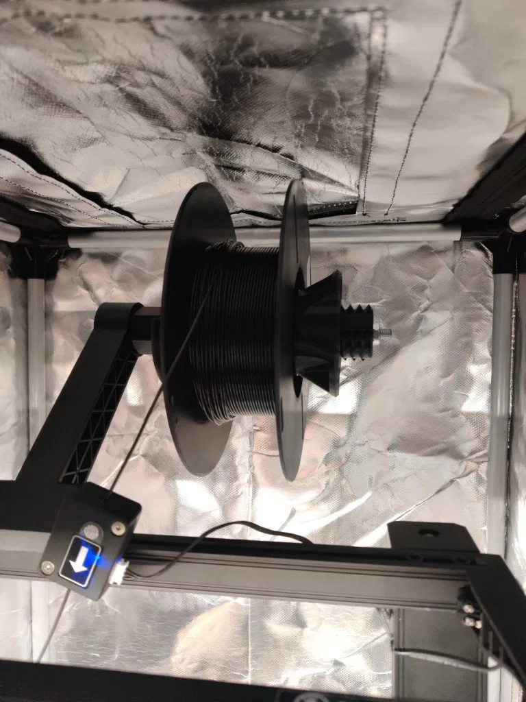 Thêm một cái giá đỡ cuộn dây tóc nữa, dùng trục ren M8 và vòng bi 608RS, hoạt động tốt trên giá đỡ cuộn dây tóc gốc của Ender 3 S1 Pro của tôi, tôi chỉ thay thế phần xoay bằng thiết kế của riêng mình.