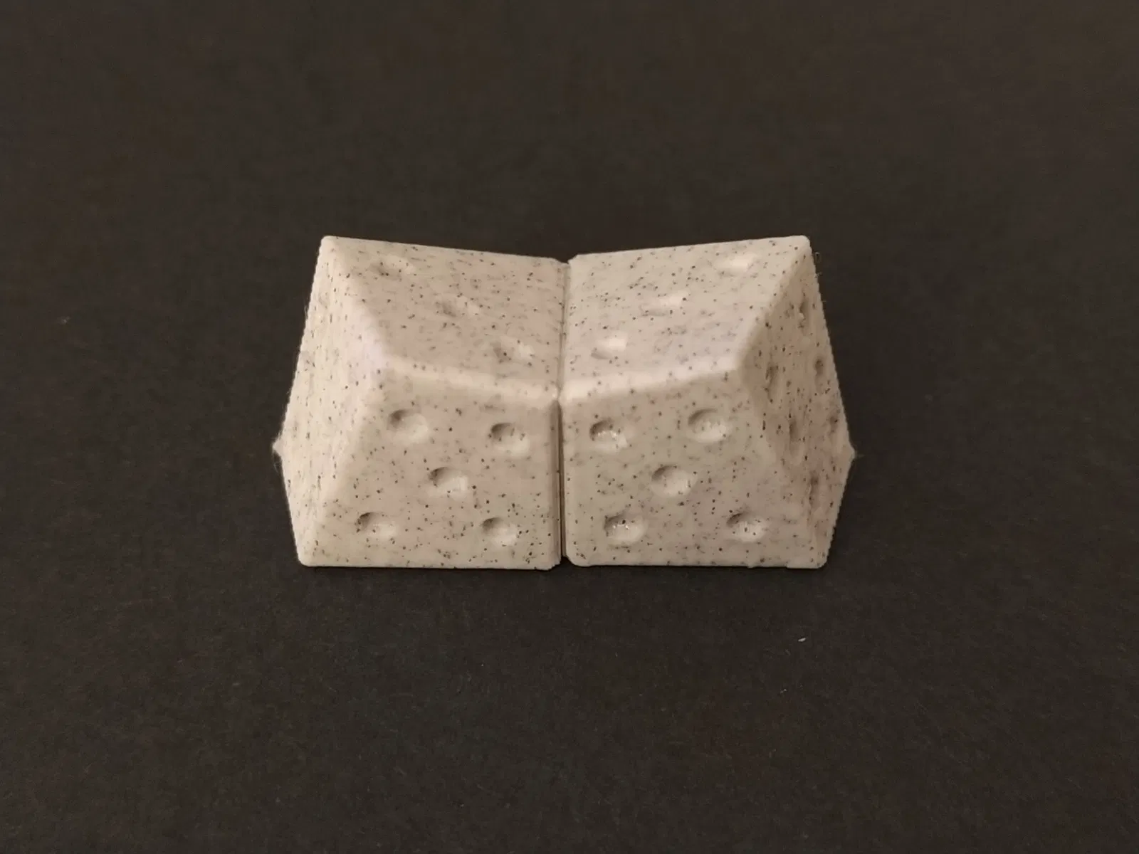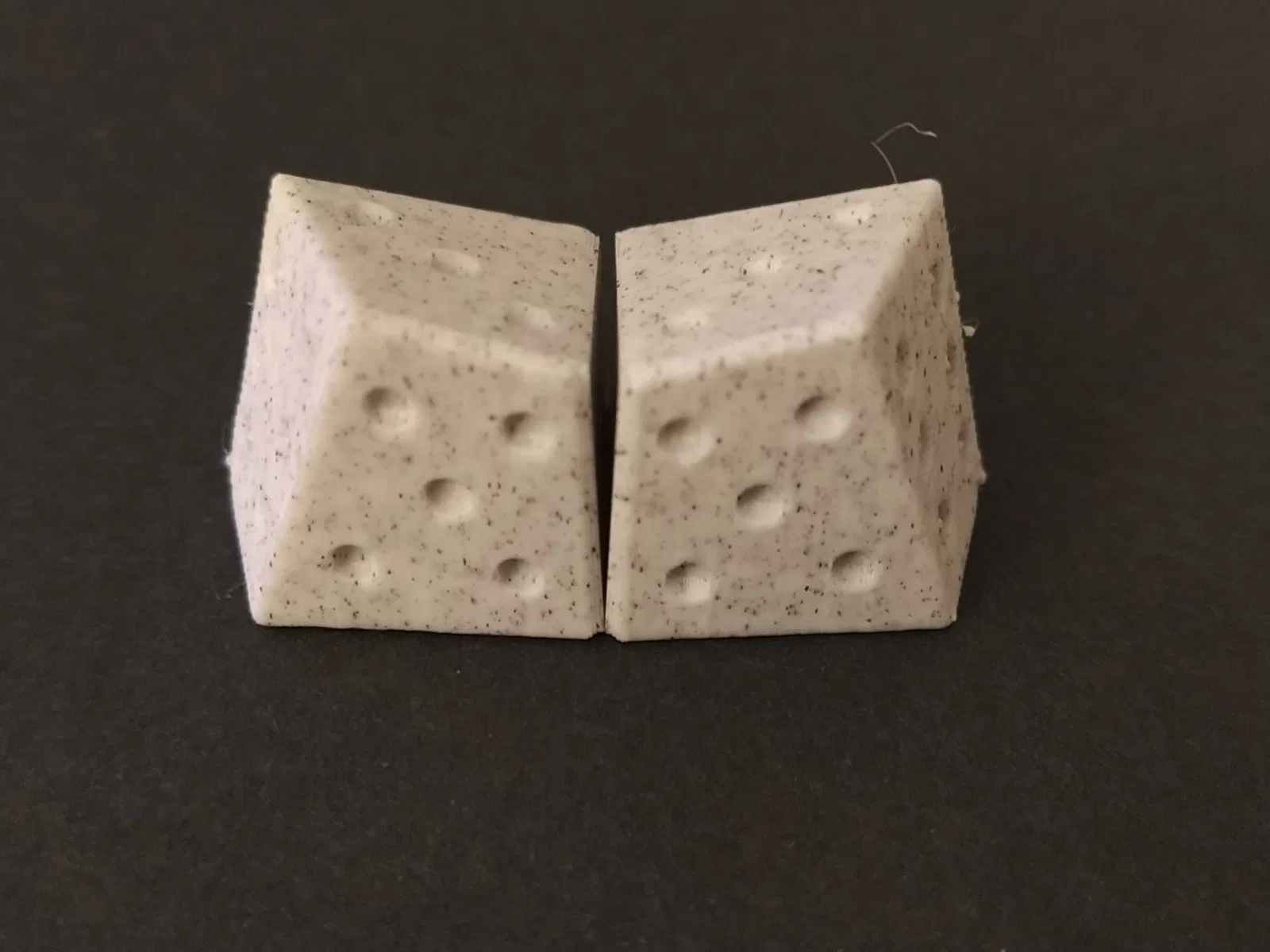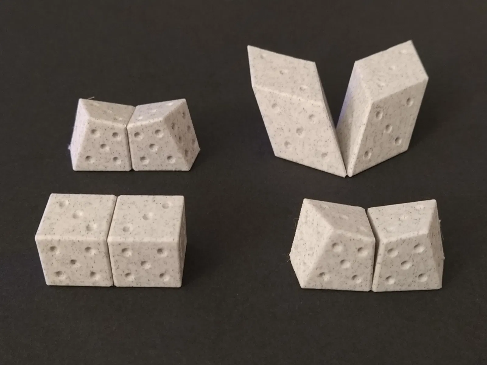 Cách dễ nhất để in những viên xúc xắc này là với mặt có số chấm thấp nhất (số 1, trên xúc xắc thông thường) nằm trực tiếp trên bàn in. Nhưng bạn có thể thu được kết quả thẩm mỹ hơn nếu in chúng ở hướng được cung cấp (với sự hỗ trợ).