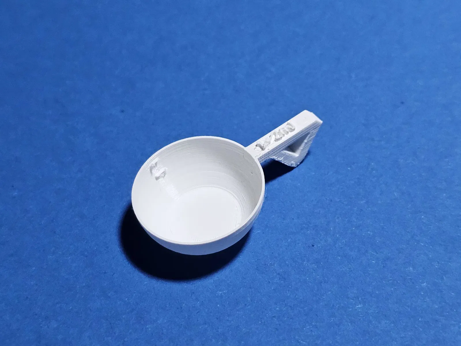 Bản chỉnh sửa của tôi dựa trên bản chỉnh sửa này giờ đây bao gồm việc sửa lại dung tích, phiên bản được cho là 2ml thực ra chỉ chứa 1ml, cũng như thay đổi tay cầm để có thể in mà không cần vật liệu hỗ trợ. Phiên bản được gọi là 15ml cũng không được đặt tên chính xác lắm. Mặc dù nó chứa được 15ml khi đo bằng ống tiêm luer, nhưng nước đã tràn lên 1mm và chảy ra ngoài ngay cả khi cử động nhẹ nhất. Có thể sử dụng được, với khoảng cách khoảng 1mm giữa mặt phẳng chất lỏng và cạnh trên, thì muỗng đo chỉ chứa được 10ml. Ngoài ra, tôi cũng đã thiết kế phiên bản 2ml cho 1ml (với các vạch chia trong cốc) cũng như phiên bản 3 và 5ml.
