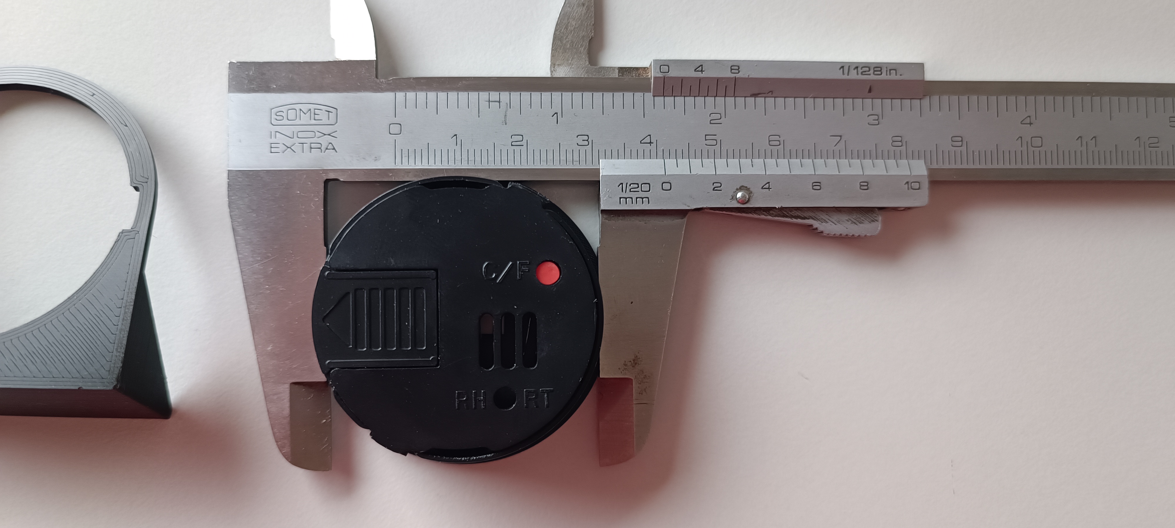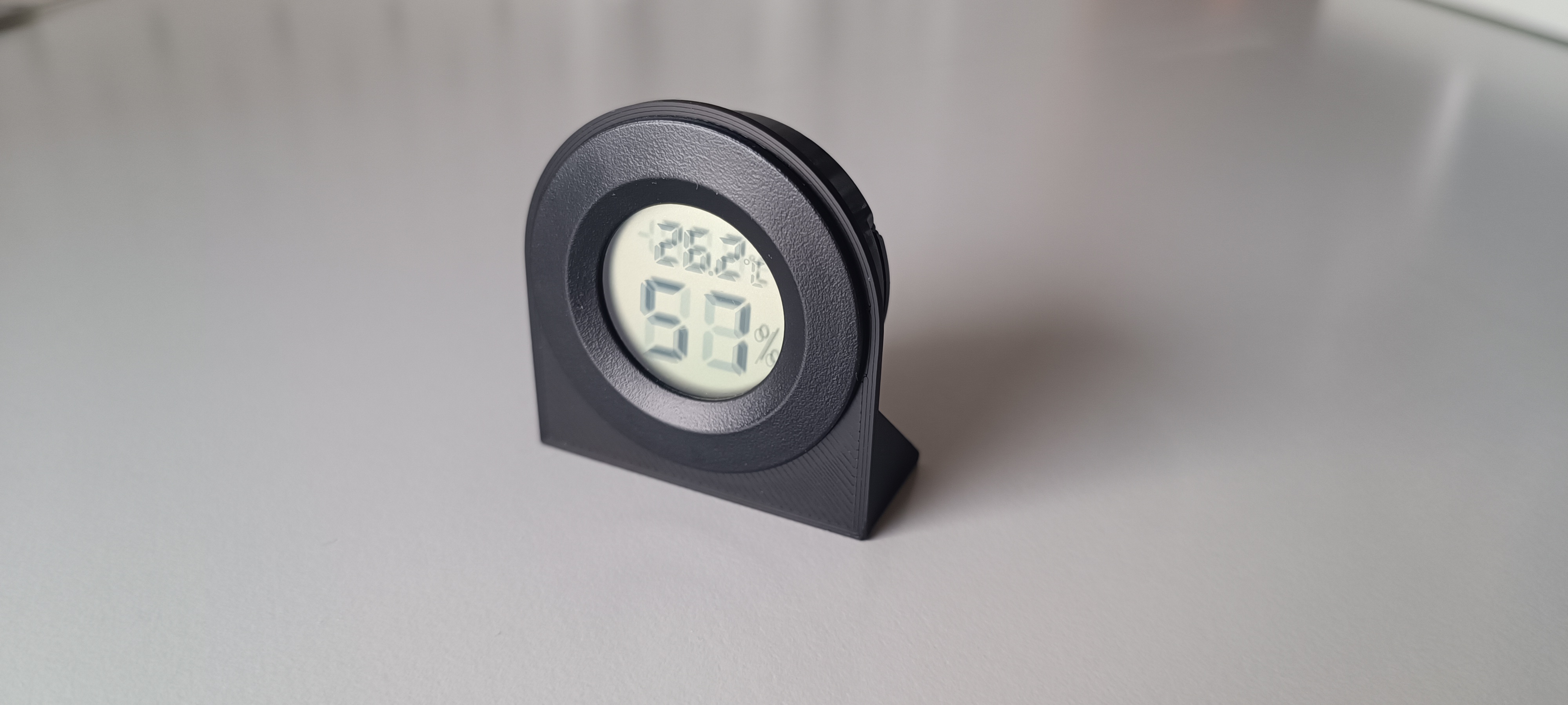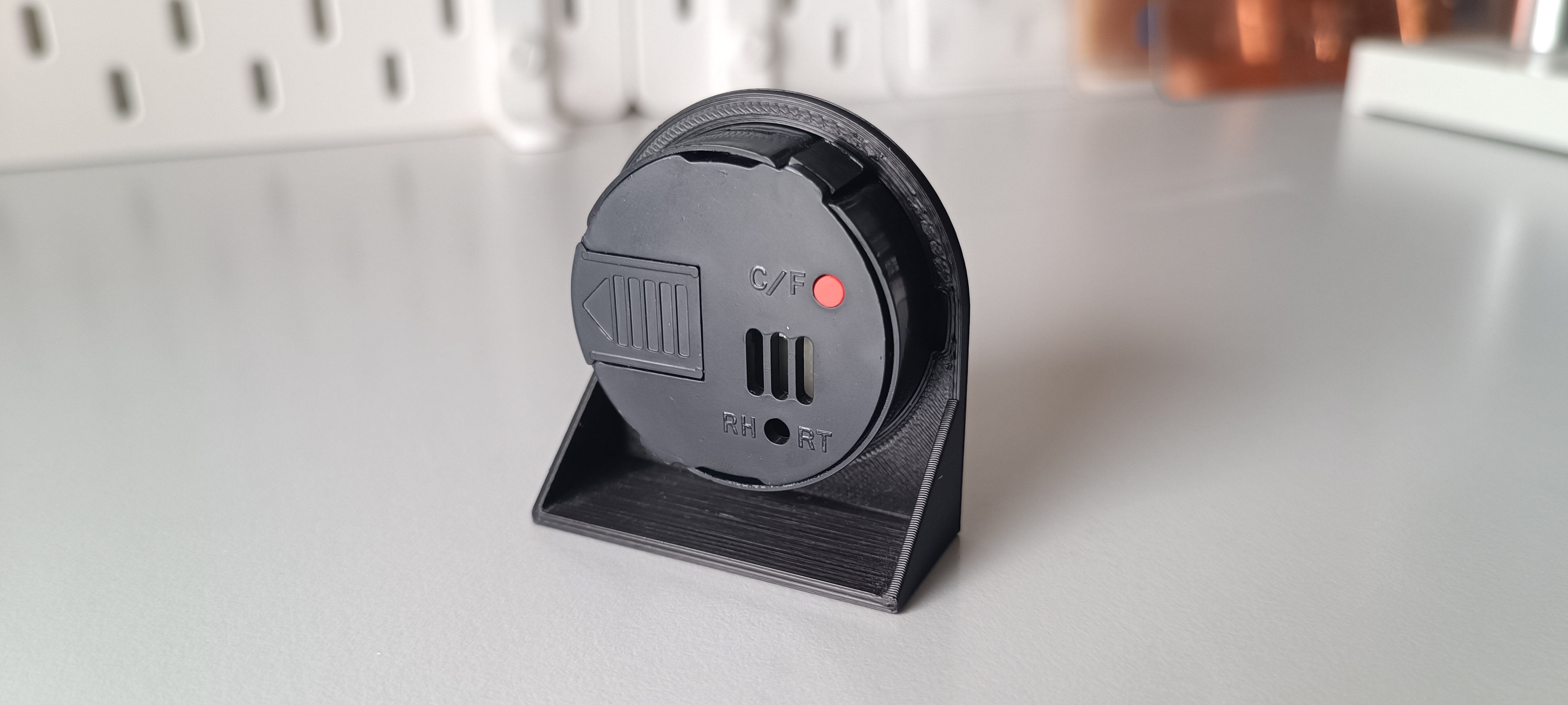 Cái đế đơn giản này được thiết kế để vừa với các loại đồng hồ đo nhiệt độ/độ ẩm phổ biến trên eBay, AliExpress. Có hai phiên bản nghiêng 85 và 80 độ, phù hợp cho các vị trí đặt khác nhau. In đơn giản, chỉ cần úp mặt xuống là được, dùng khoảng 6g nhựa in với các loại vật liệu như PLA, PETG.