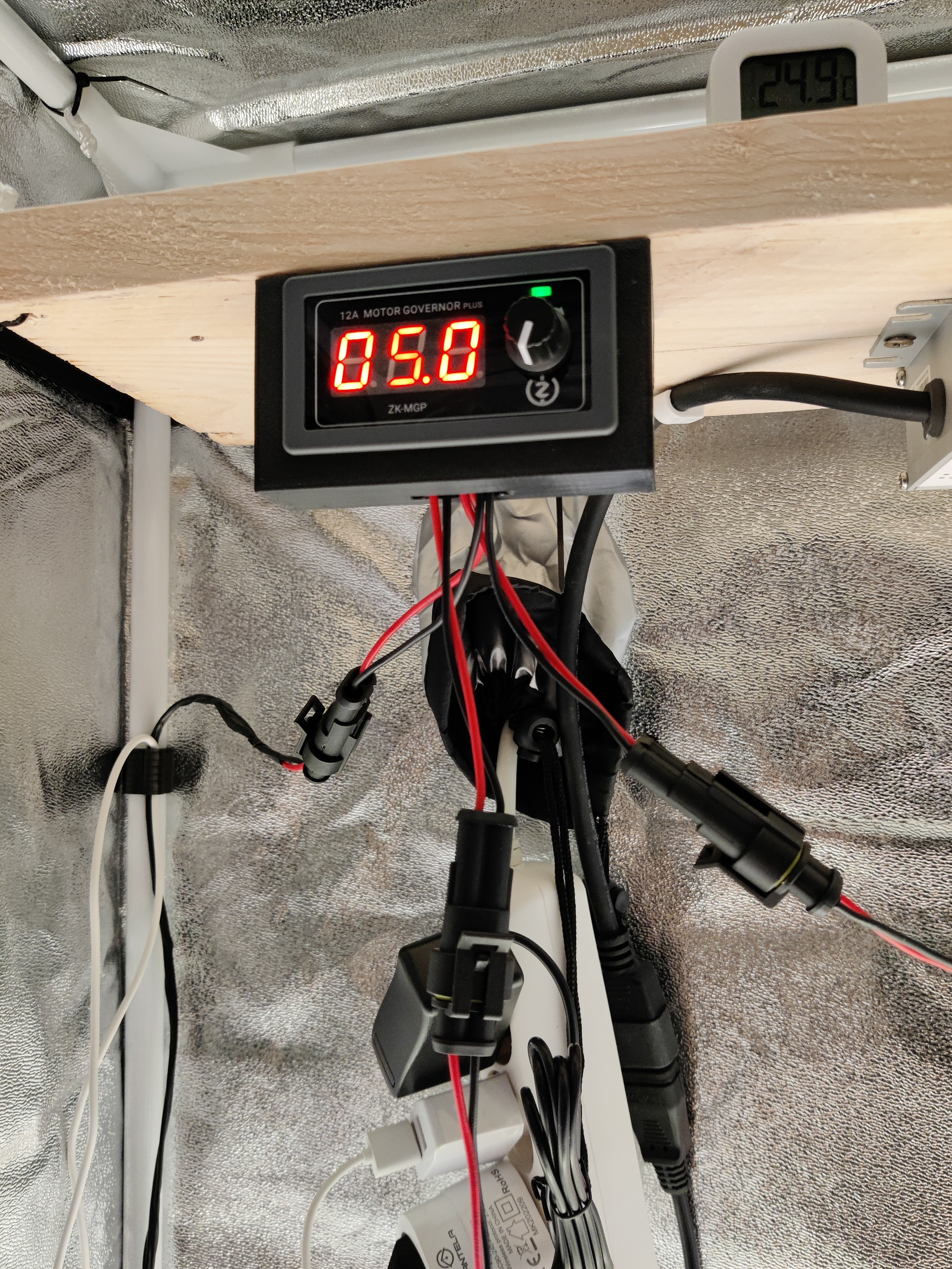 Hoạt động với Bộ chuyển đổi AC DC 12V 2A - Bộ điều khiển PWM (có thể điều chỉnh 0-100%) - 2 quạt đấu song song