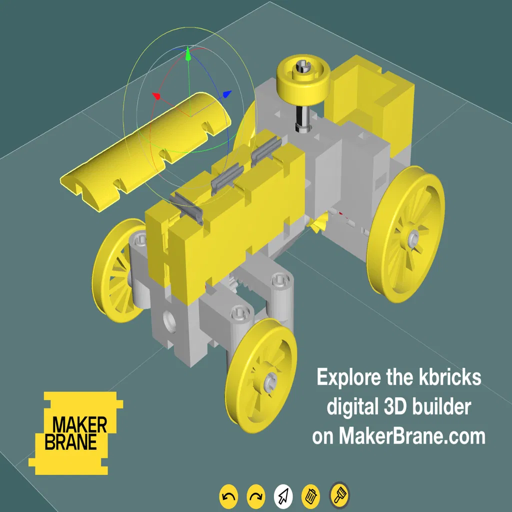 Chiếc máy kéo kbricks độc đáo này, được làm từ 24 bộ phận của hệ thống kbricks, có chức năng lái thật. Video hướng dẫn lắp ráp chi tiết và danh sách các bộ phận cần in sẽ giúp bạn dễ dàng tạo ra món đồ chơi cơ khí này.