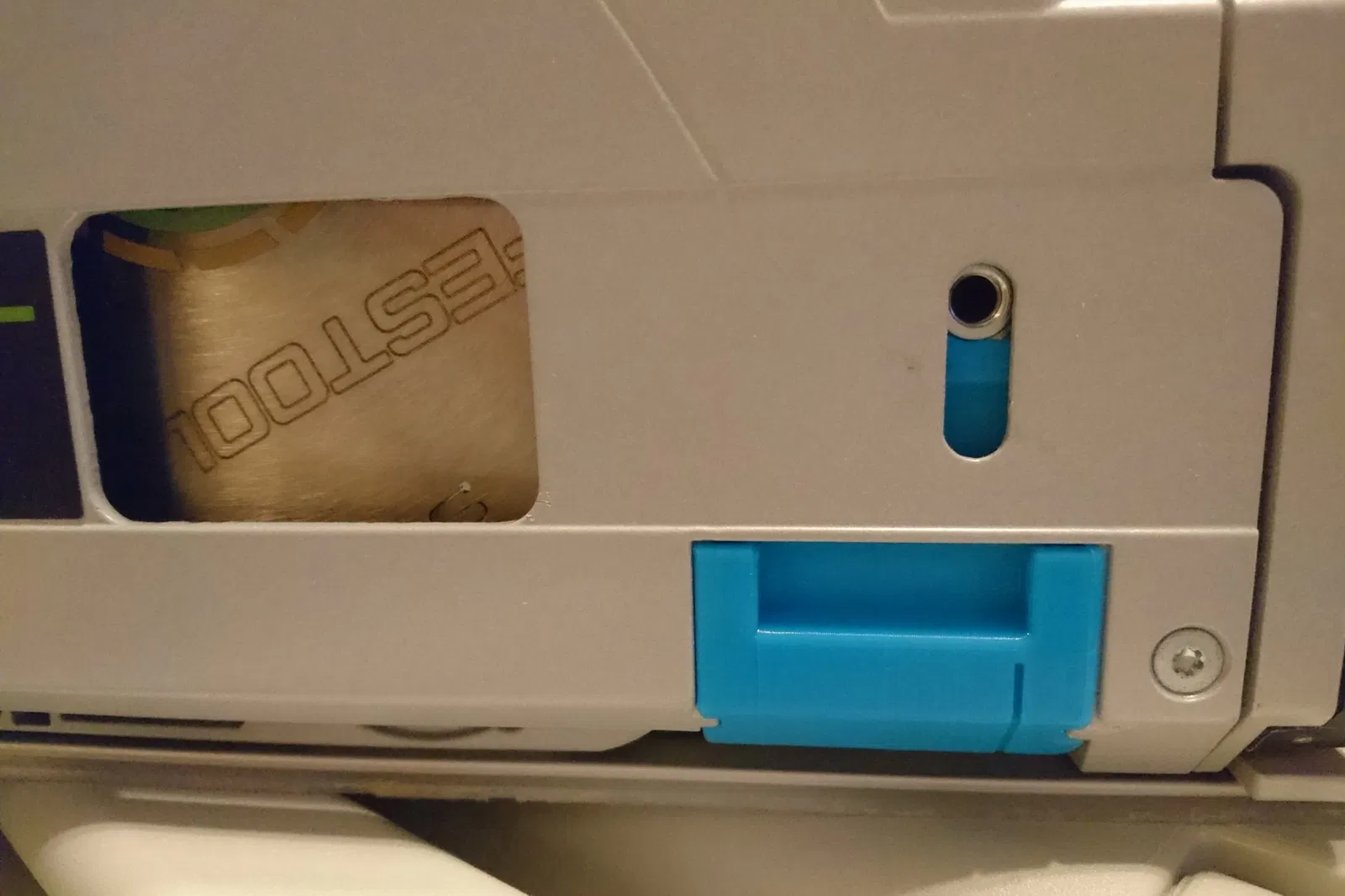 Miếng chắn vệt nứt thay thế. Cần đai ốc vuông zin. Thiết kế dành cho máy FESTOOL TS 55 REBQ. Phần vặn ốc thay thế có thể in 3D. Dùng dây in PLA+ trên máy Flying Bear Ghost6 với thông số in chi tiết.