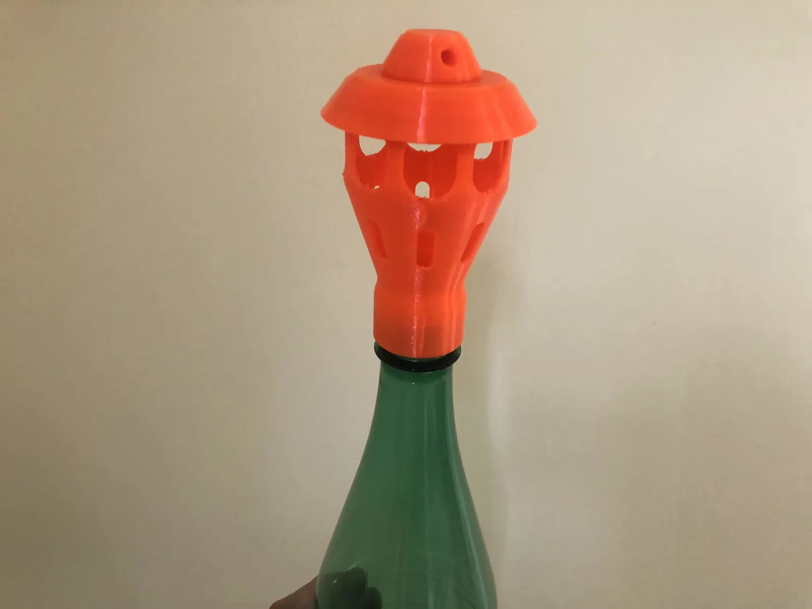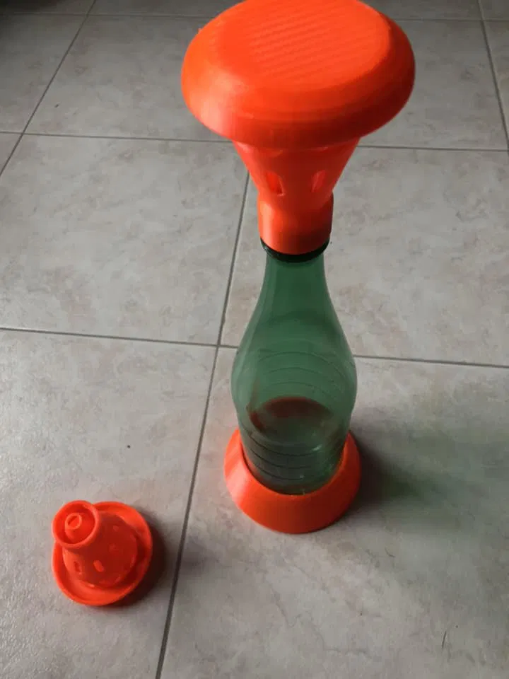 Lấy một chai nước hoặc chai coca và gắn trực tiếp miếng nhựa lên trên.