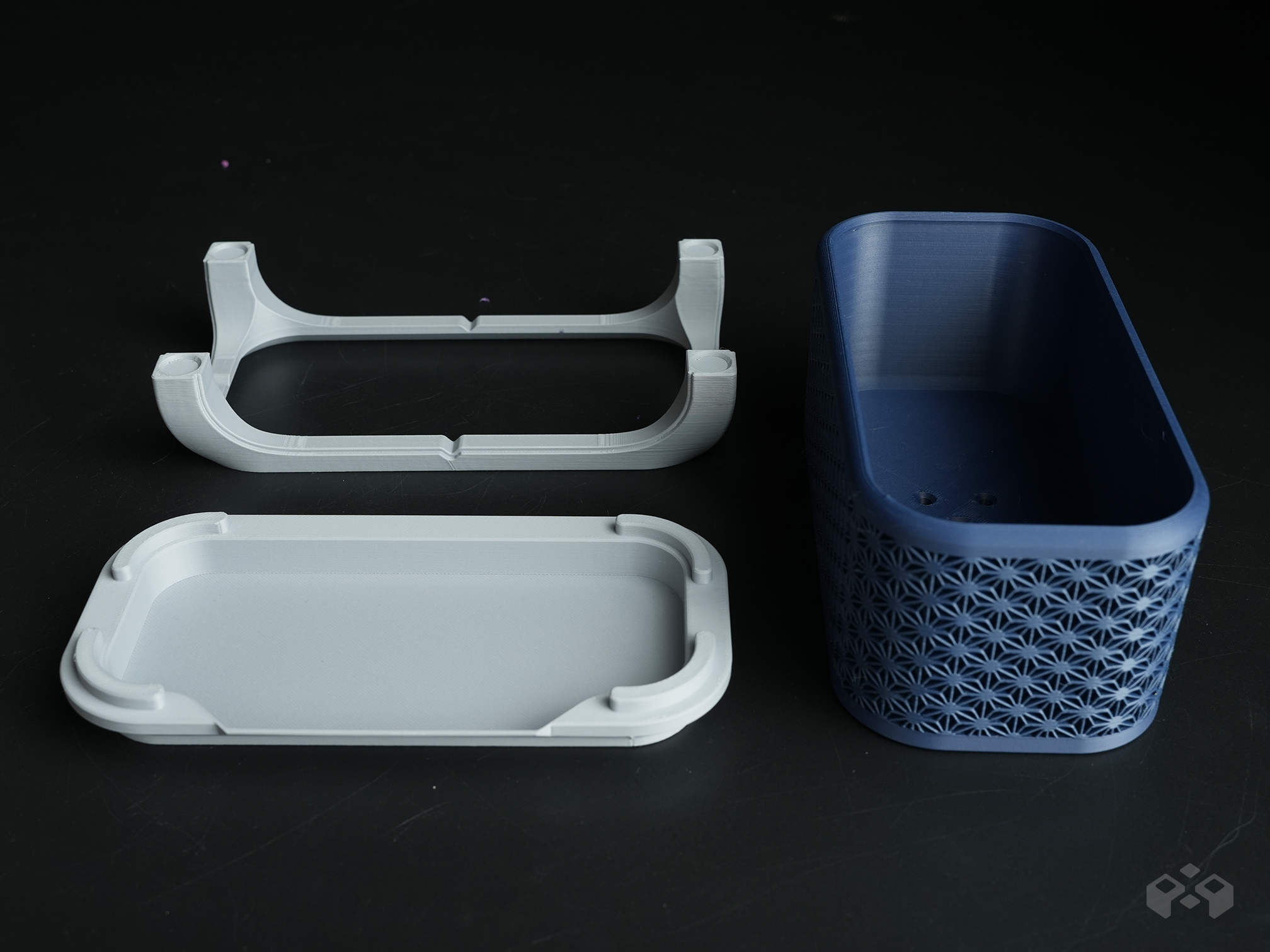 Chậu cây Kumiko gồm ba bộ phận: vỏ ngoài/khay nước/chân đế. Thiết kế đẹp mắt với hoa văn Kumiko, khay nhỏ giọt, chân đế vững chãi. Khay nước có lỗ thoát, dễ kiểm tra và cải thiện thoát nước. Không cần support.