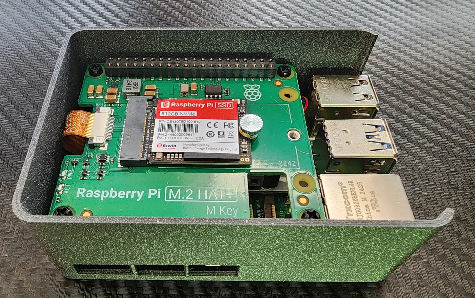 Thiếu vỏ case cho Raspberry Pi 5 kết hợp NVME SSD HAT, nên tui tự làm một cái. Thêm lỗ thông hơi dạng lục giác vì lý do này. Có chỗ khoét đáy để bắt ốc giữ riser NVME HAT chắc chắn.