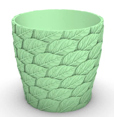 Chậu hoa có thiết kế lá, kích thước đường kính 100mm và chiều cao 100mm. Một món đồ trang trí xinh xắn cho không gian của bạn.
