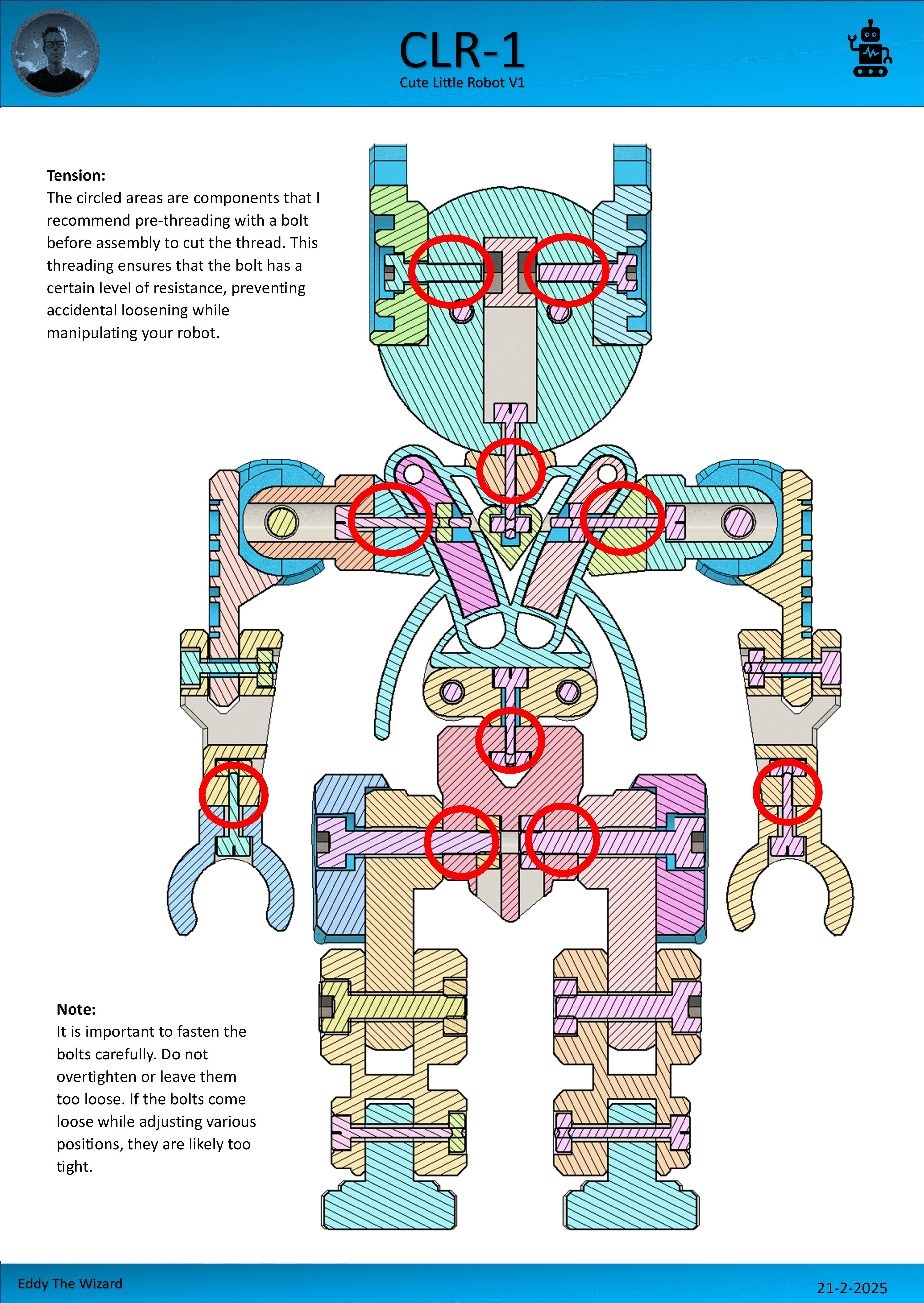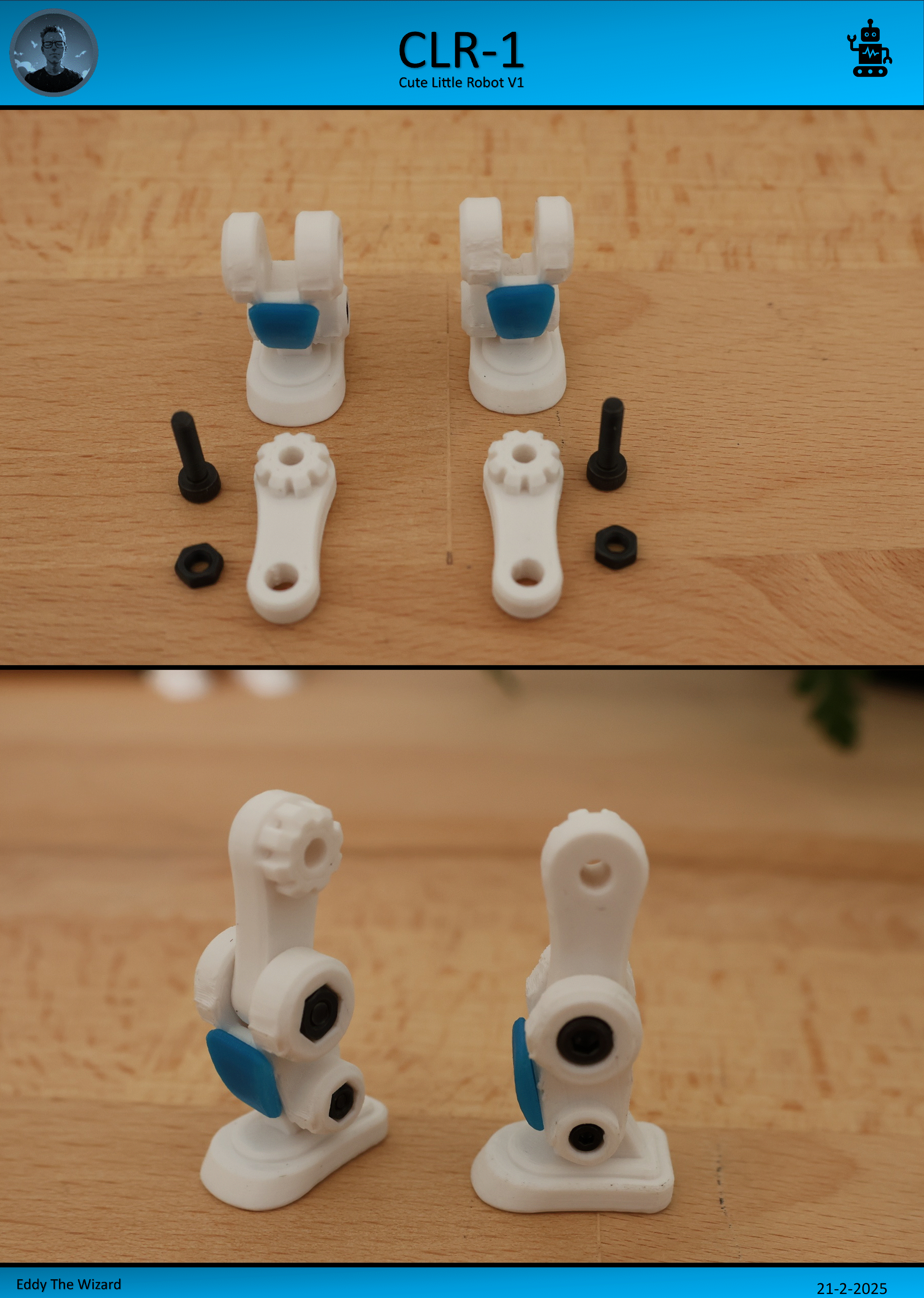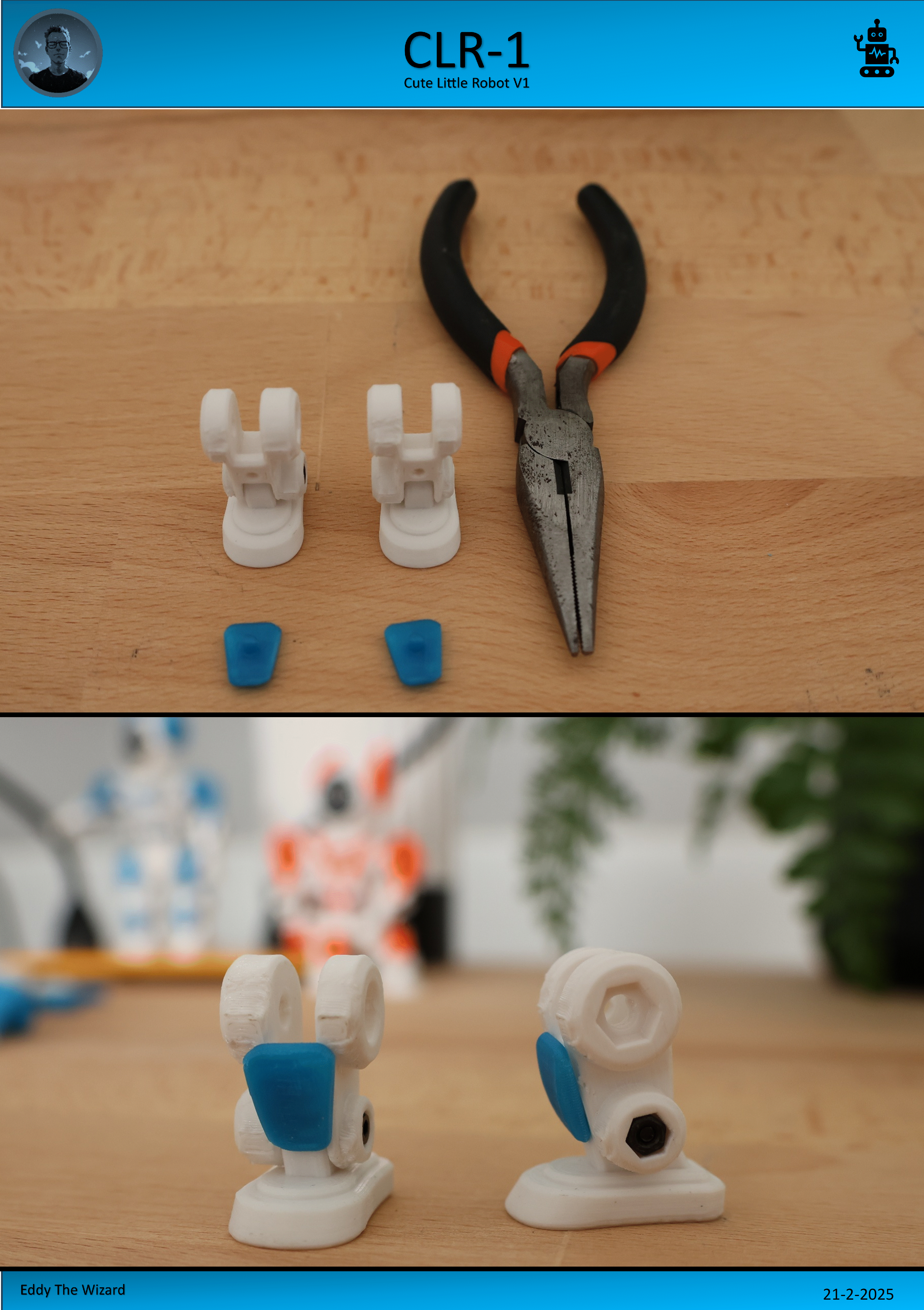 Mô hình CLR1 - Người máy nhỏ nhắn Dễ thương V1, còn được biết đến với cái tên "Clear One". Hướng dẫn in chi tiết về chiều cao lớp, đầu phun, vật liệu PLA/PETG, thời gian in và độ đặc 15%. Cần hỗ trợ, ghé Discord nhé!