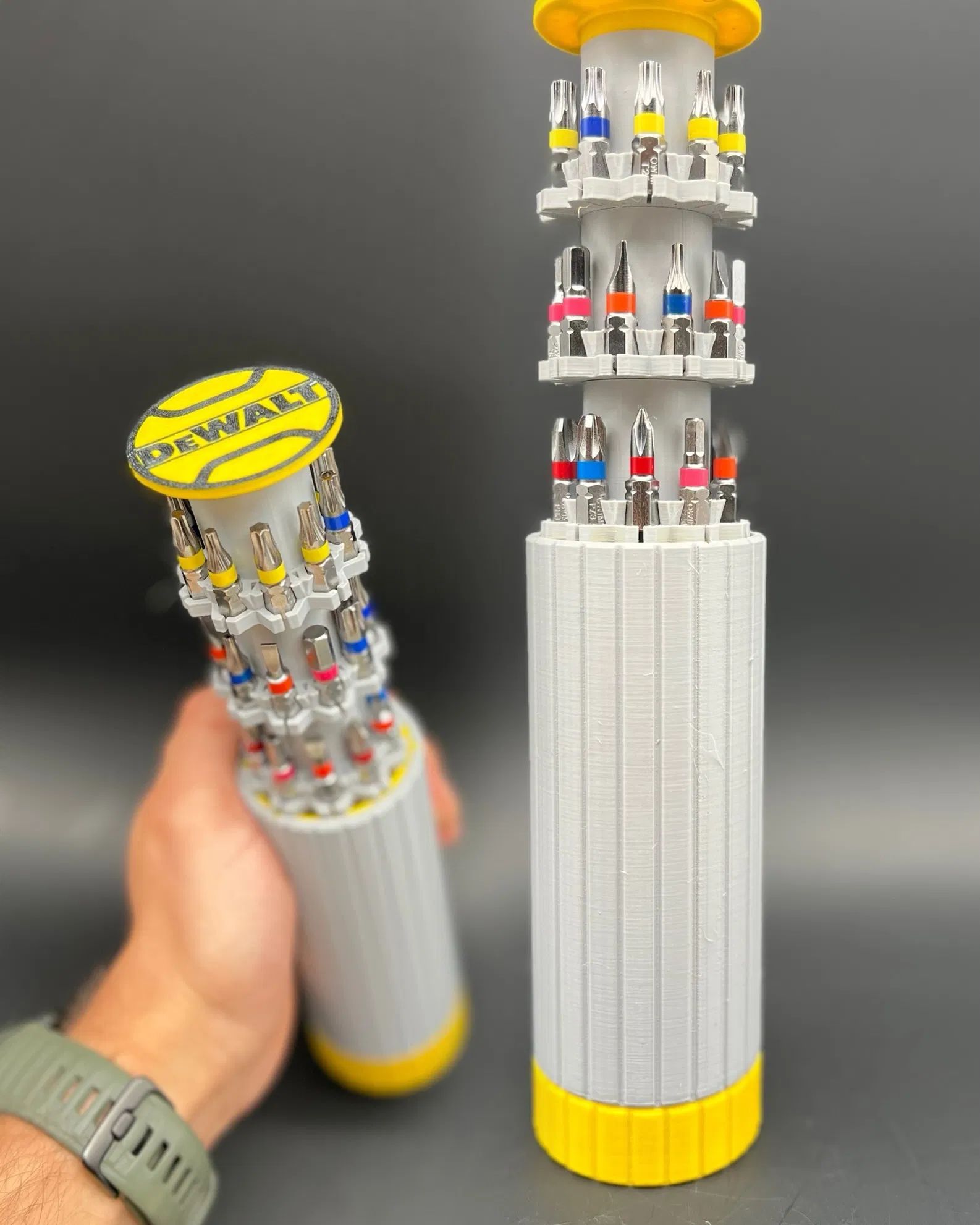 Mỗi cái vít đều được gắn chặt và sẽ không rơi ra, ngay cả khi lật ngược. Kích thước mỏng, tiện lợi giúp bạn dễ dàng mang theo trong túi hoặc túi đựng đồ nghề - rất tuyệt vời khi làm việc trên thang hoặc trong không gian chật hẹp. Hệ thống rút gọn giúp mọi thứ gọn gàng và được bảo vệ khi không sử dụng. In 3D hoàn toàn, không cần thêm phụ kiện. XEM MÔ HÌNH MIỄN PHÍ NÀY! In thử size M của cái hộp này và nếu bạn muốn có quyền truy cập tất cả các kích cỡ và nhãn hiệu, vui lòng truy cập: Xem video lắp ráp tại đây: