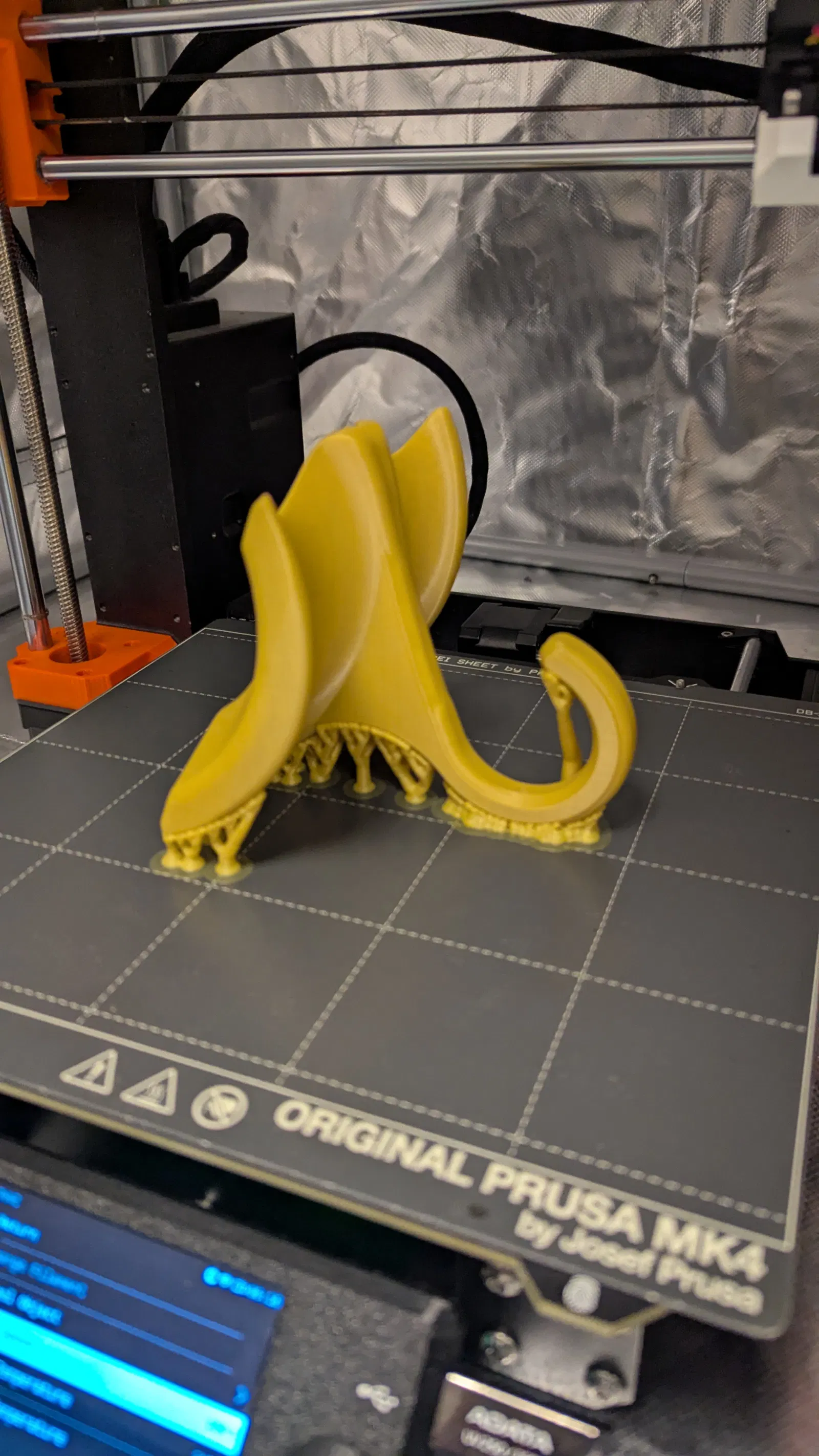 Tôi in thành công nhất khi đặt nó nằm "ngửa" với phần lỗ móc hướng lên trên. Xem hình nha. Cái này tui in bằng PLA trên máy MK4S.